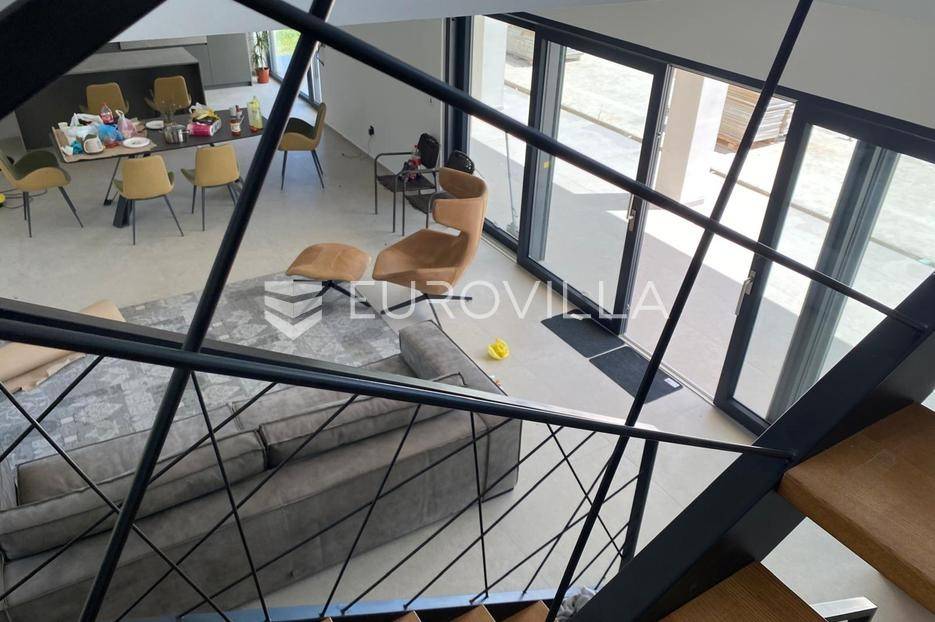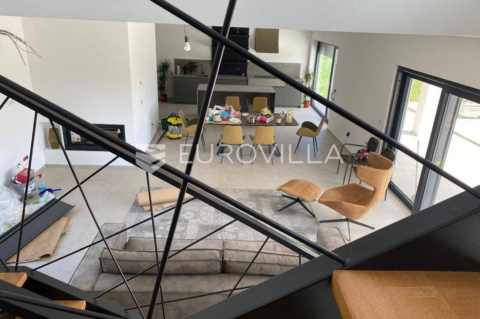 Na velebnoj lokaciji u Raklju, okruženoj zelenilom i mirom, smjestila se ova prekrasna luksuzna villa površine 232.47 m2 na 1619 m2 parcele. Sastoji se od prizemlja i kata, sljedećih karakteristika : u prizemlju - ulazni hodnik i pretprostor, wc/vešeraj, prostrani open space dnevni boravak s kuhinjom i blagovaonom, predsoblje, spavaća soba sa svojom kupaonom, natkrivena terasa od 67 m2; na katu - dvije spavaće sobe svaka sa svojom kupaonom te terasa od 61.77 m2 ( dio natkriven dio otkriven ) na kojoj se nalazi jacuzzi i sađ koje se proteže prekrasan otvoreni pogled na rakaljski zaljev s jedne strane i na planinu s druge strane. Na već spomenutoj parceli se smjestio bazen od 42 m2 ( 14 m x 3m ), parking za minimalno četiri automobila, kamin. Uredit će se dio te postaviti sprave za vježbanje.