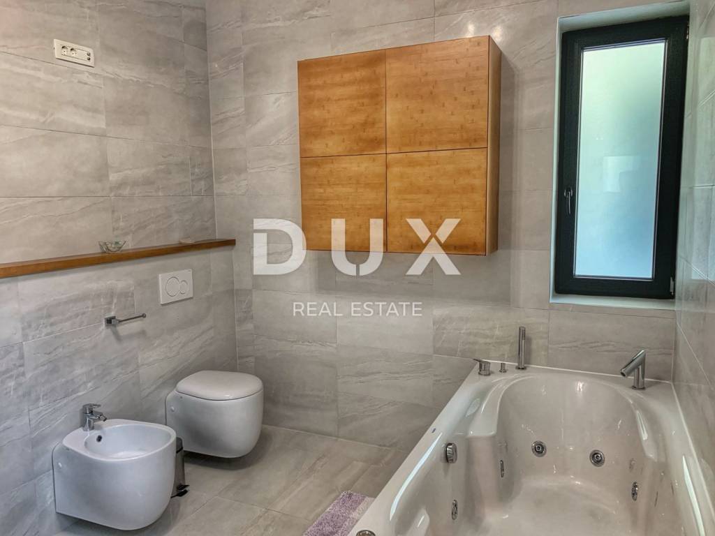 The apartment is located on the 1st floor of the villa in a peaceful and quiet location, yet in the immediate vicinity of all the necessary amenities for a quality life. The villa / house in which the apartment is located is south-oriented with large glass walls in all rooms on the south side, so that from these rooms there is a panoramic view of the entire Kvarner Bay. The house / villa consists of two separate apartments, each with an area of approx. 170 m2. The apartments have almost the same layout, and each consists of a large living room that is designed as a spacious open space with access to the terraces, then 3 bedrooms, 2 large bathrooms, one smaller for guests, a wardrobe and a hallway. The villa is well built and luxuriously equipped, all built-in materials, floor and wall coverings are of the highest standards. - 10cm thick stone wool - underfloor heating - heat pumps - high quality aluminum carpentry. It is for rent fully furnished with first-class furniture and appliances. Certainly a beautiful property for a luxurious family life. A UNIQUE PROPERTY DEFINITELY WORTH YOUR ATTENTION IN A GREAT LOCATION!!! SRDOČI: Srdoči is a residential neighborhood on the west side of the city of Rijeka, only a few minutes away from the city center with a developed infrastructure that guarantees excellent traffic communication both with other parts of Rijeka, as well as with other parts of Kvarner and Croatia. The availability of health care, schools, kindergartens, shops, banks, post offices, parking spaces and cultural, entertainment, sports and recreation offers make this neighborhood an extremely desirable place to live. The relatively new district of Rijeka can be described as a residential area that over the years has managed to keep its traditional story about the history of education and sports. The primary school "Srdoči" was opened back in 1986, and since then every year an increasing number of children enroll due to the numerous contents it offers. In addition to the school sports hall, the outdoor school playground, which has new artificial grass, is an indispensable space for various sports activities. Because of his achievements and projects, he is the pride of all students, parents, employees and citizens of the Local Board and the wider community. There are 32 streets in the area of Srdoč, which in most cases were named after writers: Ante Modrušan, Antun Branko Šimić, Antun Gustav Matoš, Dobriša Cesrić, Dragutin Tadijanović, Gustav Krklec, Mate Lovrak, Miroslav Krleža, Tin Ujević and many others.