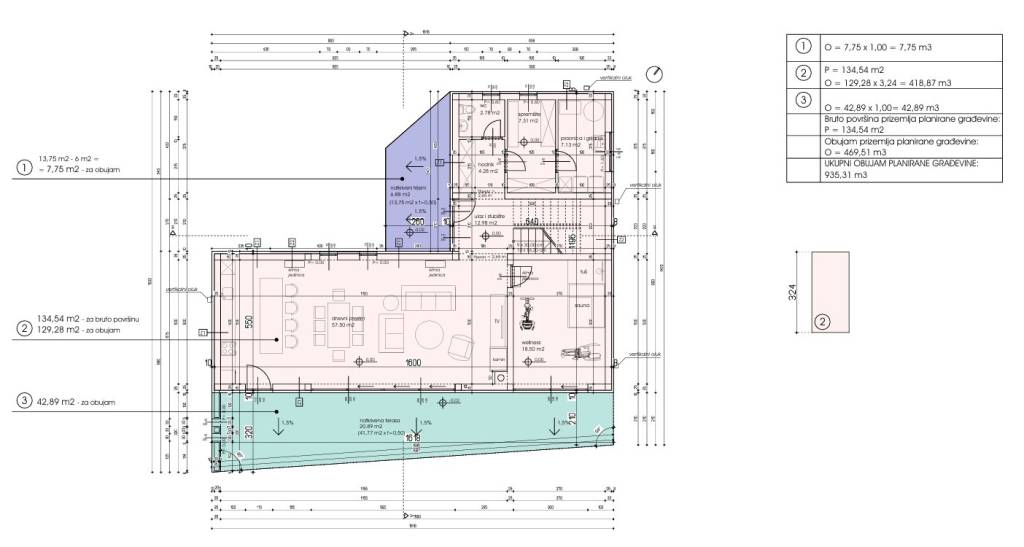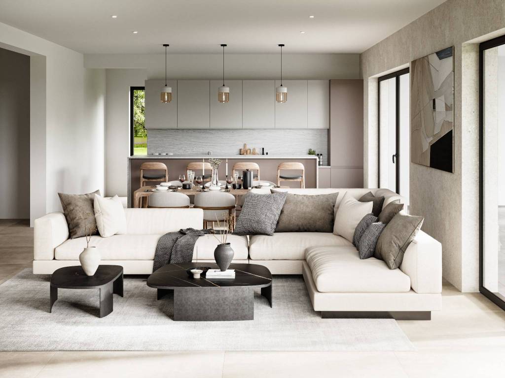 Located in a quiet area of Tar, this contemporary detached villa with a swimming pool is part of a well-designed modern residential development. The property is designed to comfortably accommodate up to eight persons, with clearly separated living, private, and outdoor zones. The ground floor features an open-plan living area combining the lounge, kitchen, and dining room, complemented by a wellness area, technical and service rooms, and a covered terrace. The first floor is arranged as the private sleeping area with four comfortable bedrooms, each with its own en-suite bathroom, along with additional covered and open terraces, while the top floor is conceived as a spacious terrace intended for relaxation, featuring a jacuzzi. The outdoor area includes a sunken swimming pool with a gross surface area of 49 m², a sunbathing area, and parking space. The villa has been designed in accordance with valid spatial-planning regulations and is equipped with modern technical systems, including underfloor heating, a heat pump, a VRF heating and cooling system, and full communal infrastructure connections.
