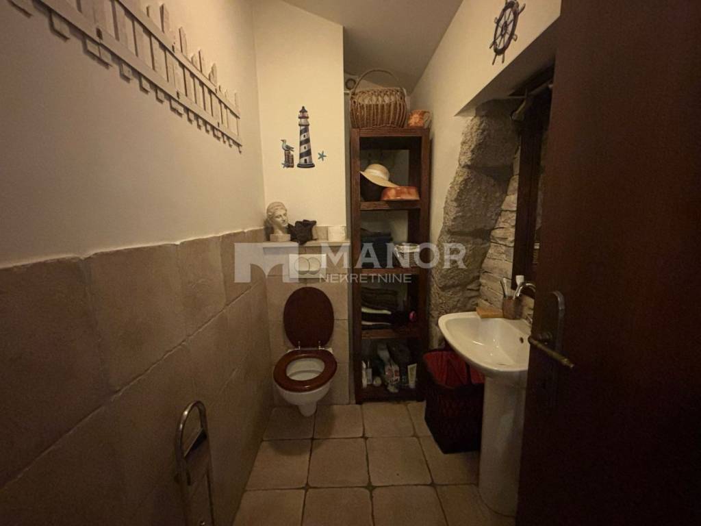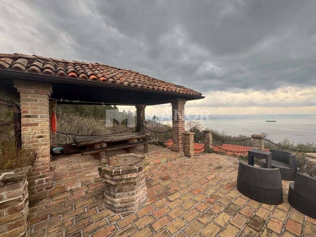 Manor presents a renovated stone house offering panoramic views over the entire Kvarner Bay. The house consists of a kitchen and dining area, living room, bedroom, and a toilet. In the basement, there is a finished tavern-style space, while the yard features a covered terrace with panoramic views of the entire Kvarner region. Beneath the terrace, there is a storage room with a bathroom.