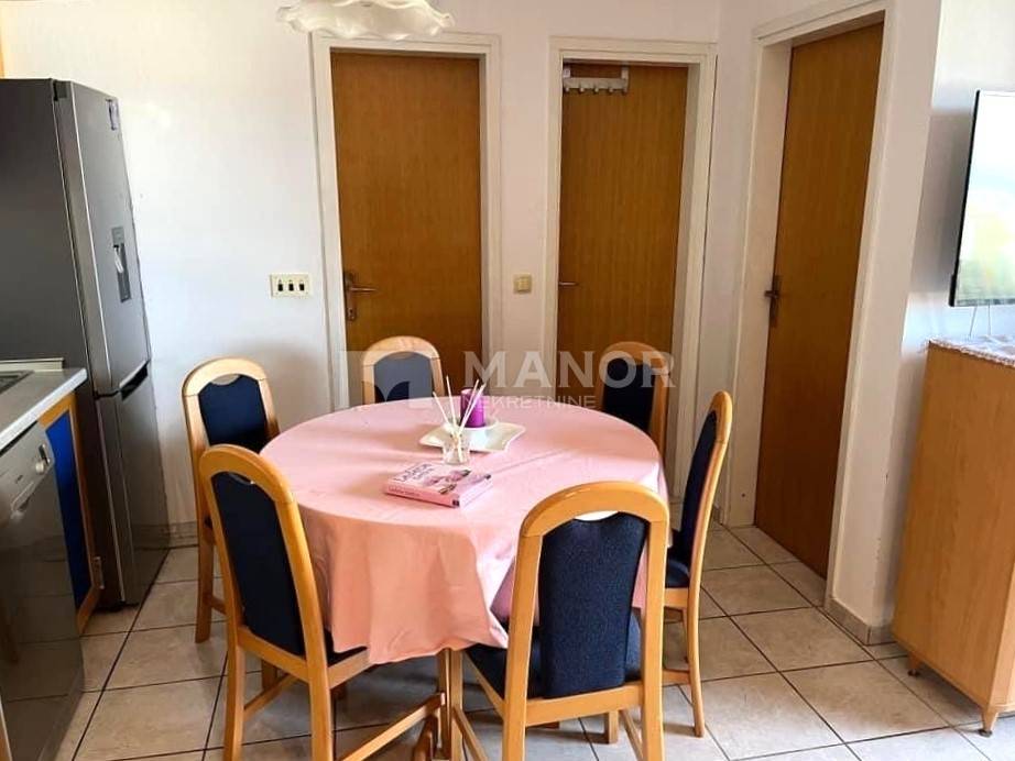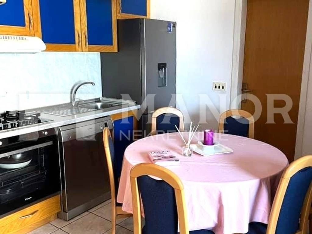 Manor presents a two-story apartment located near the beach in Malinska on the island of Krk. The apartment with a living area of 56 m2 is located on the 2nd floor of a residential building. It consists of a living room, kitchen, dining room, bedroom, bathroom and loggia on the first floor, and a bedroom, bathroom and storage room on the first floor. There are enough parking spaces in the garden. Great property for private vacation or investment!