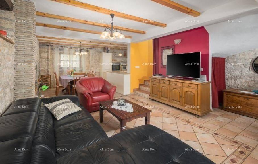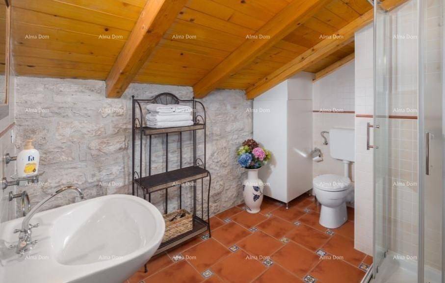 Holiday house for sale Tinjan. This house is an ideal opportunity because since 2008 it has a well-established activity of seasonal rental to tourists. The living area of this typical Istrian stone house is 193.47m2, and next to it, agricultural and urbanized land with a total area of 6,253m2 is for sale. On the ground floor there is a living room, a kitchen, and a dining room, and there is also an external bathroom on the outside of the house. The first floor has two bedrooms with attached bathrooms. There are two more bedrooms in the attic, each with its own bathroom. Next to the house there is a swimming pool of 32 m2 and a hydromassage tub for 6 people. On the outside of the house there is a covered terrace, a storage room for bicycles and a storage room, and a brick barbecue. In the yard of the house is an orchard with a children"s playground, which has a slide, swings, soccer goals and a trampoline. In the immediate vicinity of the house there is a smaller object of 32 m2 with facilities for entertainment (darts, billiards, table football). The entire area of the house is surrounded by a wall.For more information, call the numbers:Info:Azra Valjevac+ 385 91 611 5706+385 98420885azra@almadominvest.com