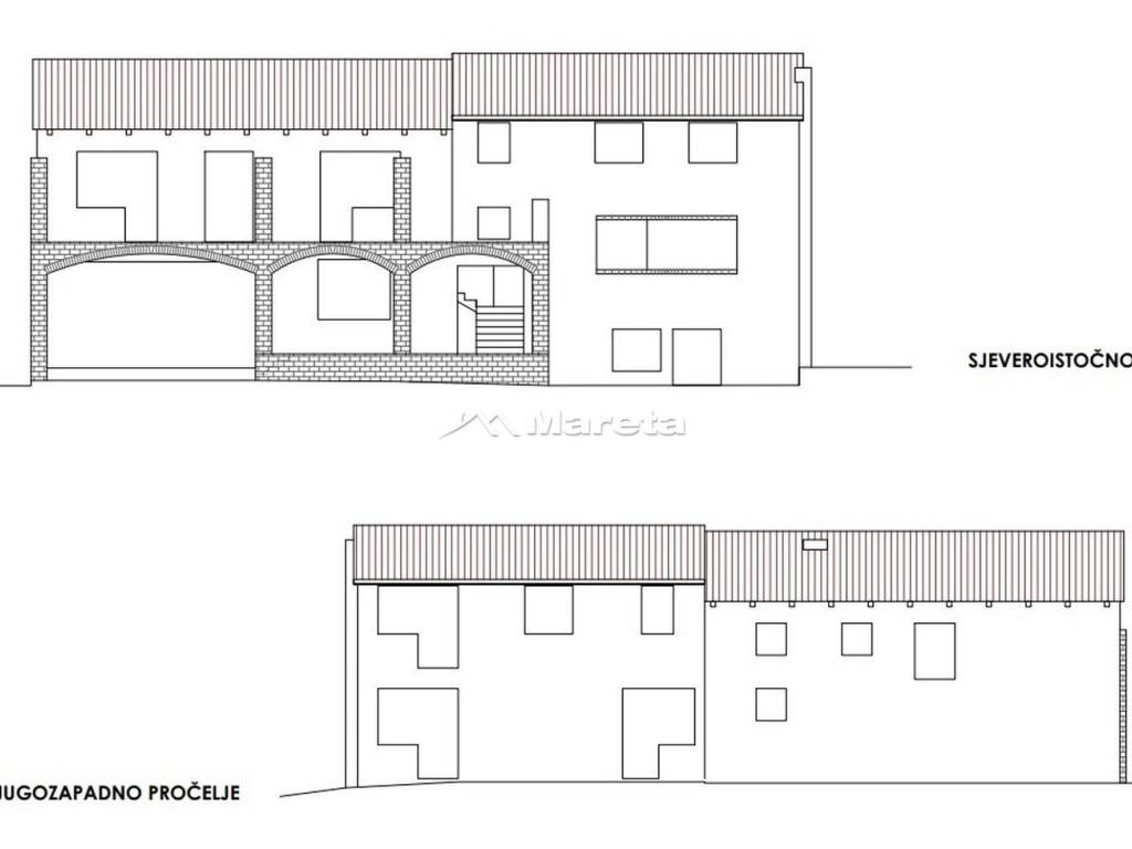 KUKLJICA, prodaje se nedovršena samostojeća stambena manje zahtjevna zgrada u maksimalnim tlocrtnim dimenzijama 19,15m x 10,80m, koja se sastoji od podruma, prizemlja i kata izgrađena na zemljištu površine 1255m2. Tlocrti u galeriji.
