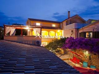 POLJANA - OTOK UGLJAN, prodaje se stambena prizemnica sa 2 apartmana i stambena katnica sa 3 apartmana U CENTRU MJESTA 50 M OD MORA!!! Stambena katnica se sastoji od tri apartmana, svaki na svojoj etaži; - u prizemlju površine 80m2 ( terasa, kuhinja i blagavaona, tri spavaće sobe, dvije kupaonice i hodnik) - na 1.katu površine75m2 (terasa, kuhinja i blagavaona, dvije spavaće sobe, kupaonica i stubište za potkrovlje) - na potkrovlju površine 59m2 ( kuhinja i blagavaona, tri spavaće sobe, kupaonica i stubište ) veliki app Oleander prizemlje za 7+1 osoba, kat Palma 3+2 osobe, potkrovlje Smokvica za 7 osoba. Stambena prizemnica se sastoji od dva apartmana svaki po cca 30m2 (svaki ima odvojenu spavaću sobu + kuhinju, blagavaonu i kupaonicu). /Lovor za 3+1 osoba i Maslina za 3+1 osoba/ 26-28 osoba prima kompletni objekt! Sve se prodaje kompletno namješteno, kategorizirano i u funkciji u turističkom najmu!!! Više fotografija pogledajte na www.mareta-nekretnine.hr