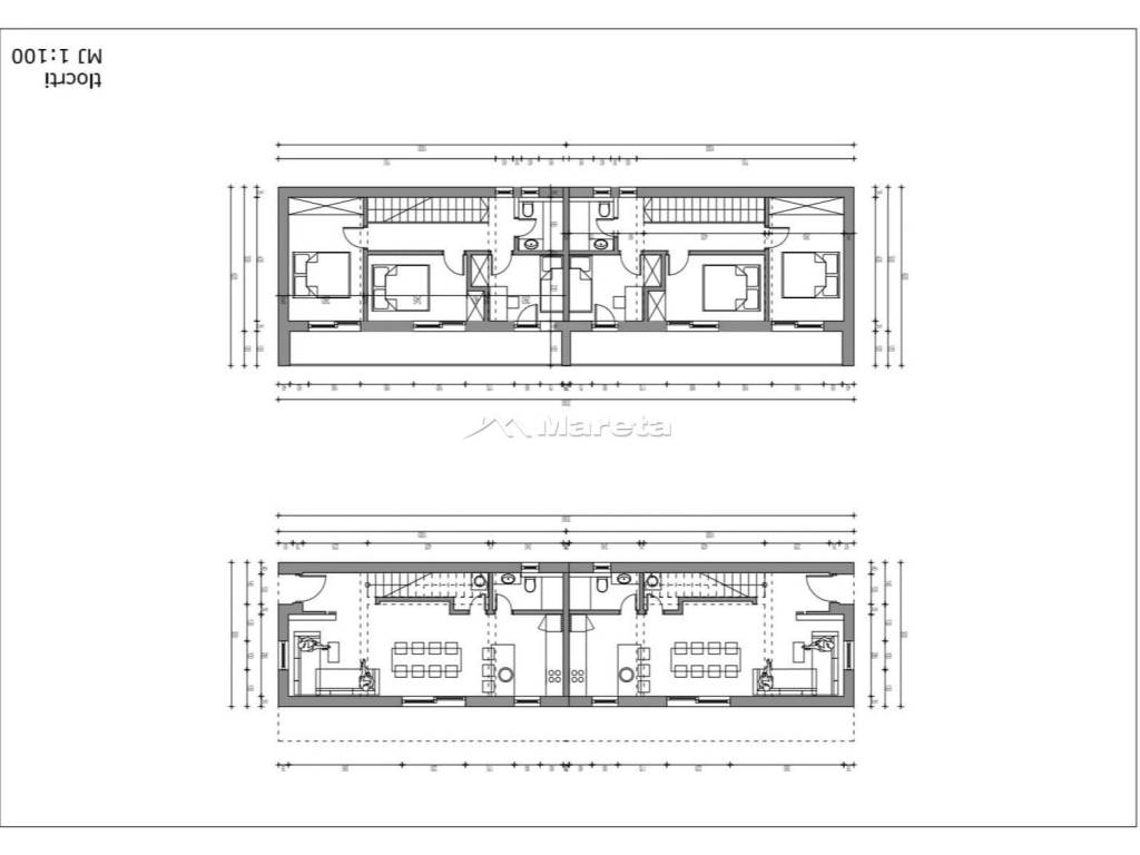 Svaka stambena jedinica ima 100m2 stambenog prostora + dva parkirna mjesta i dio vrta.( tlocrti i raspored prostorija u galeriji).
