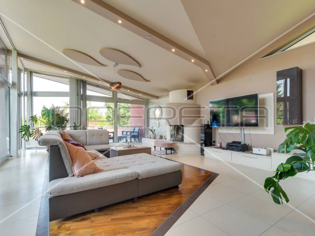 Jedinstvena kuća/vila u blizini centra Donje Stubice, na ravnoj parceli od 2.377 m2 koja pruža mir i privatnost. Prostrana, s orjentacijom I-Z-S-J, luksuzno uređena i opremljena, proteže se na 2 etaže. Prizemljem se prostiru prostrani "open space" dnevni boravak s kuhinjom i blagovaonicom, kupaonica, zaseban wc, izba, predsoblje, tehnička prostorija, ulazni hodnik i trijem. Na katu se nalazi "master" spavaća soba s pripadajućom kupaonicom i wc-om, 3 spavaće/radne sobe, kupaonica s wc-om, galerijski predprostor i terasa. U garaži mjesta za 2 automobila + 10 parkirnih mjesta u dvorištu. Oaza luksuza i mira s prednostima života u prirodi i blizine svih sadržaja potrebnih za kvalitetan život. 40 min vožnje do Zagreba. Preporuka!