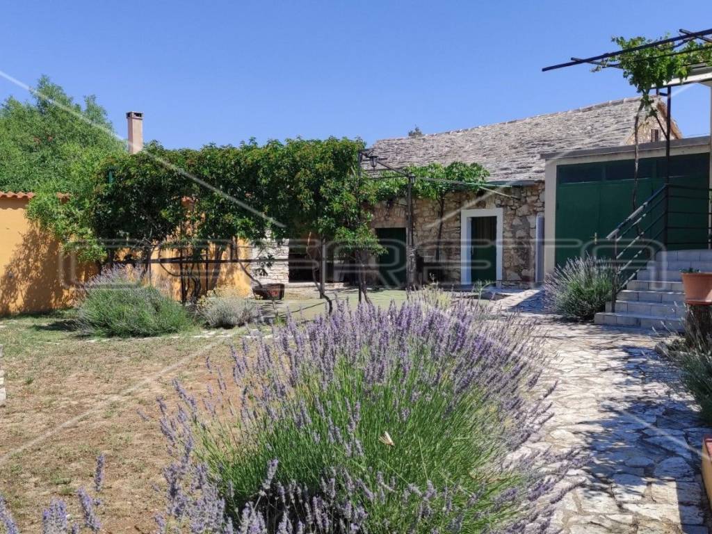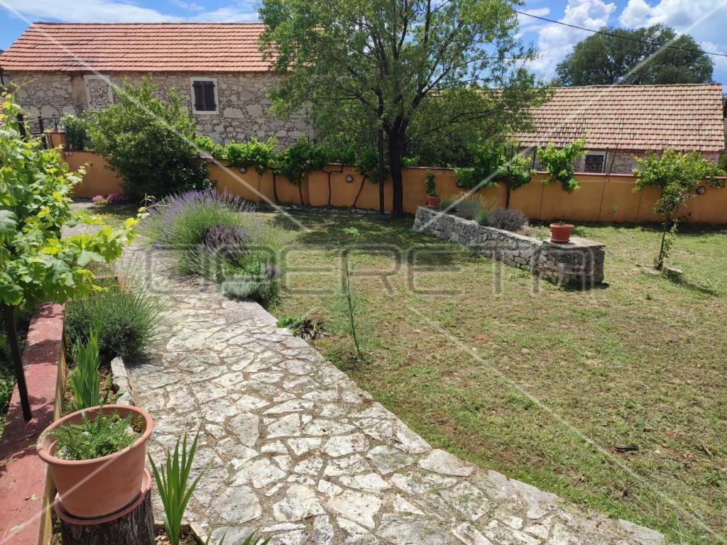 The house surrounded by high walls with a total area of ​​133 m2 is located in Lozovac. In front of the house there is a beautiful and spacious yard with a total area of ​​587 m2.