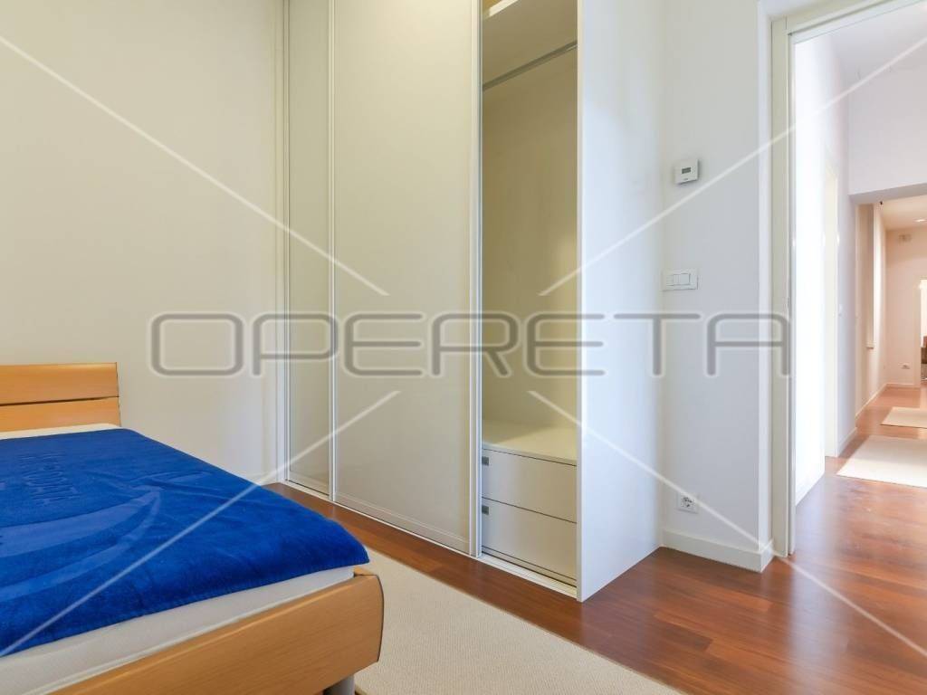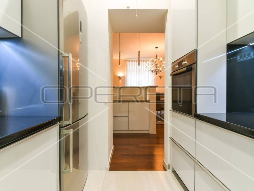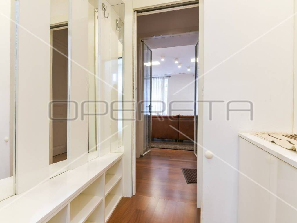 Izuzetno lijep, ugodan i kompletno kvalitetno renoviran građanski stan u blizini Botaničkog vrta. U potpunosti je adaptiran 2013. godine (nove instalacije, ugrađen stropni klimatizacijski sustav, izlivena betonska deka, podno grijanje u cijelom stanu s prilagođenim skupocjenim parketom i keramikom, spušteni stropovi s 3,30m na 3m radi dodatne izolacije i osvjetljenja, skinuta sva stara žbuka). Broj prostorija je ostao isti no izmijenjen je raspored. Dvije su velike salonske sobe orijentirane na istok (dnevna soba i blagovaonica s kuhinjom), hodnikom je odijeljen spavaći dio (1 veća soba s vlastitom garderobom) i 1 manja dječja ili radna soba, kupaonica s ugrađenom saunom, gospodarska soba s perilicom i sušilicom te odvojeni toalet. Iz hodnika kao i iz veće spavaće sobe postoje izlazi na prostrani natkriveni balkon okrenut na južnu dvorišnu mirnu stranu. Pripada mu i udio u tavanu i podrumu. Stan je pokriven alarmnim sustavom.
