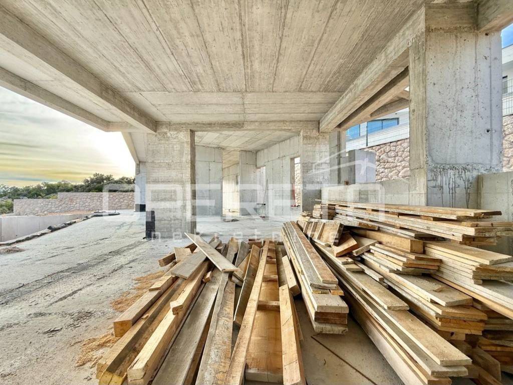 The property includes three bedrooms – one master suite (20.25 m²) and two additional rooms (12 m² – 18 m²). The open-plan living room and kitchen (56 m²) form the central feature of the home. Sea views can be enjoyed from every room. A wellness area is also planned, which can optionally be converted into a fourth bedroom.