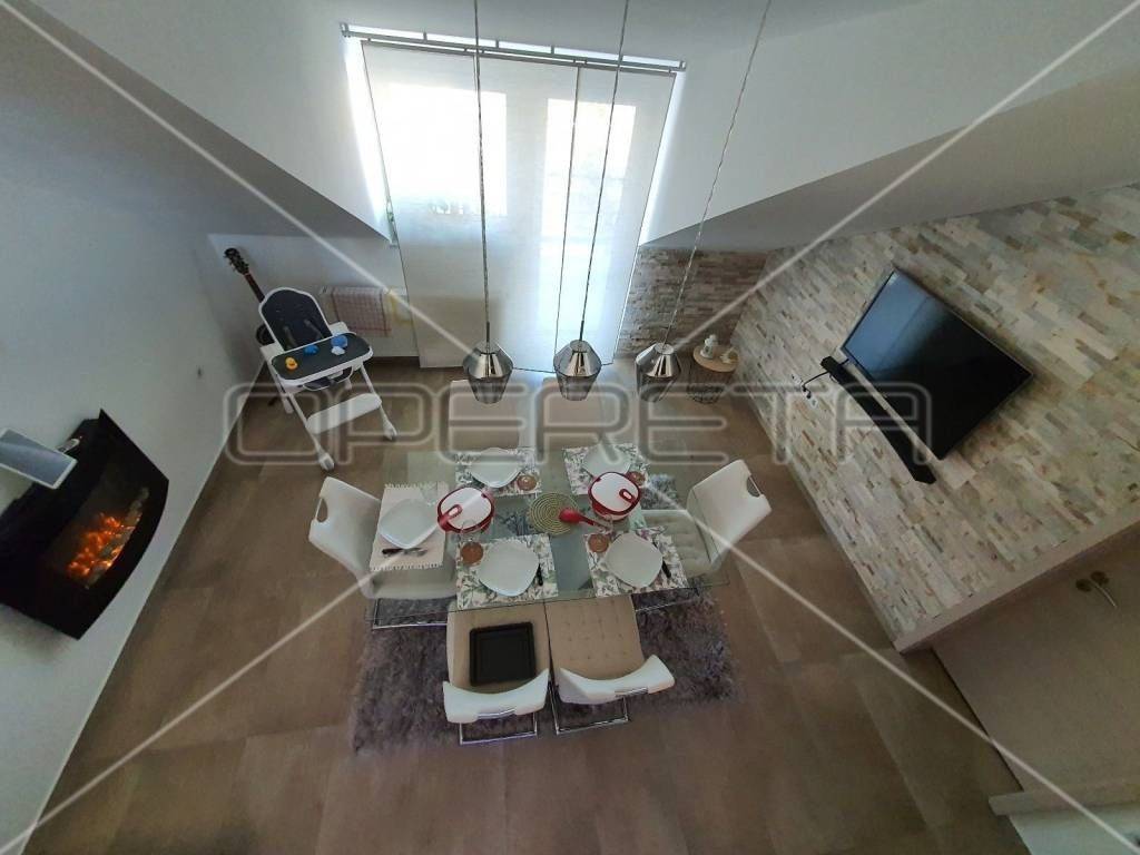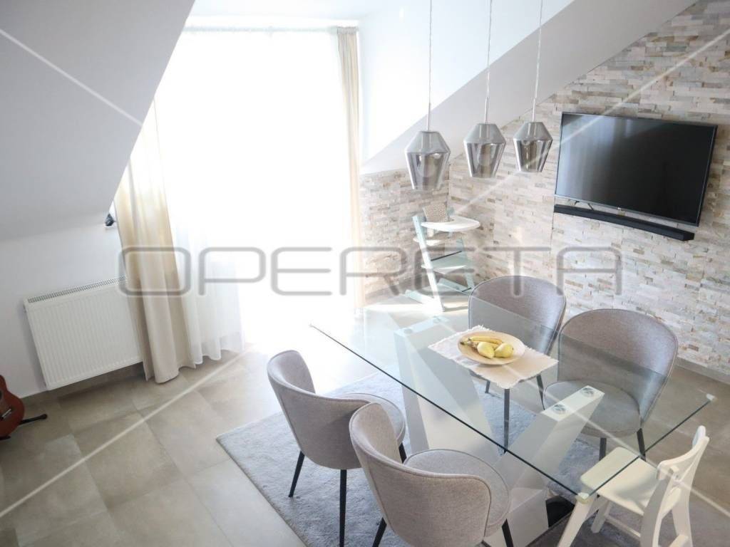 Prodaje se u potpunosti namješten i vrhunski stan na vrlo traženoj lokaciji u blizini samih Toplica Sveti Martin. Stan se nalazi na drugom katu stambeno - poslovne zgrade i površine je 79,66 m2, te je površina galerije (potkrovlje) 27,83 m2. Stan se sastoji od: hodnika, dvije kupaonice, dvije spavaće sobe, garderobe, balkona, dnevnog boravka, blagovaonice i kuhinje te uređene galerije koja nije etažirana, ali je uređena u dnevnu sobu s ugradbenim ormarima.