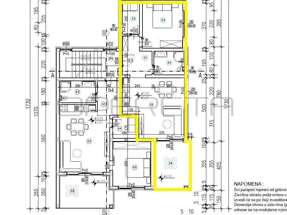 Apartment 1s, 61m2, new building, Šibenik - Grebaštica
