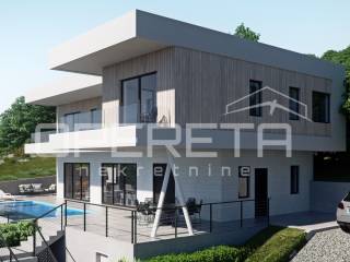 In a quiet place above the beautiful Opatija, a building plot for sale with a valid building permit and paid utilities for the house, gross area 242.60 m2 of closed space. With an additional 144.25m2 of open terraces, and 32m2 of outdoor pool.