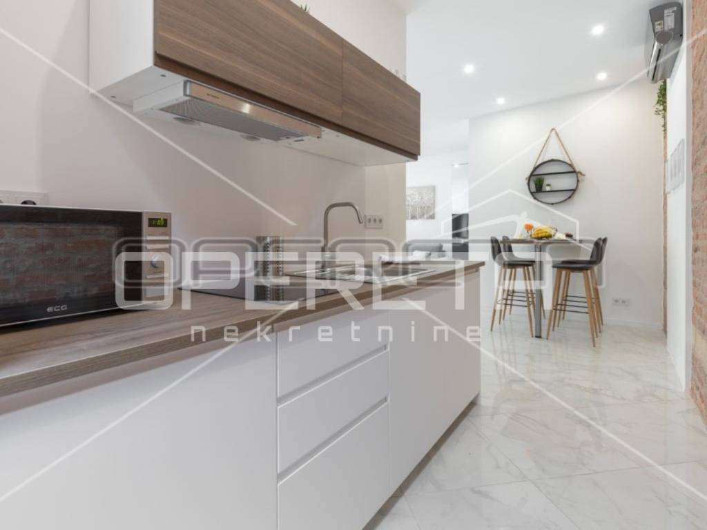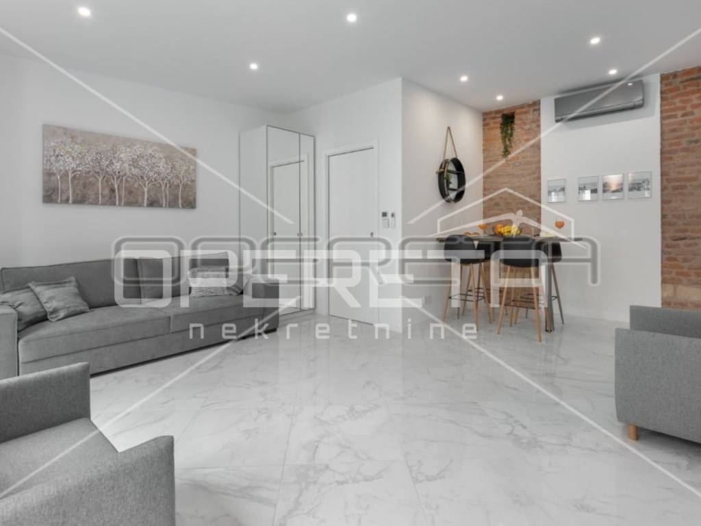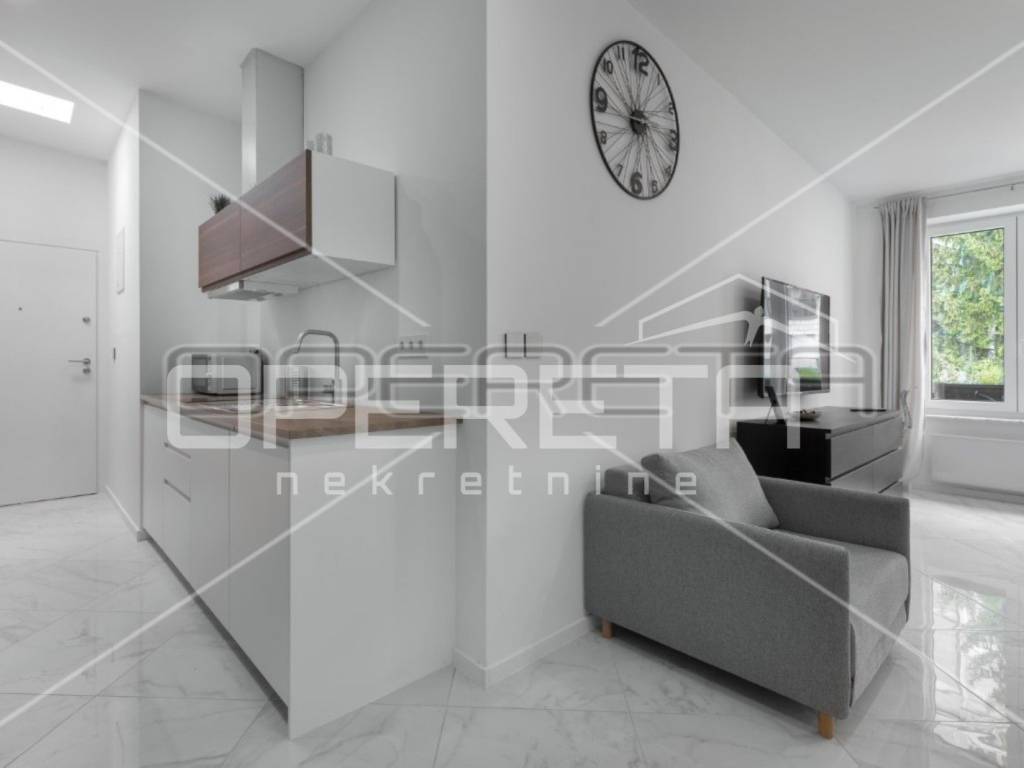 RENT, APARTMENT, ZAGREB, CENTER, REPUBLIC OF AUSTRIA. Luxuriously decorated 1-bedroom apartment of 38m2 in an excellent location close to the city center. The apartment is oriented to the west and overlooks a quiet courtyard that is not affected by the noise of the city streets. It is conceptually designed as an open space where only the bathroom is separate.  Possible intervention to separate the bedroom.