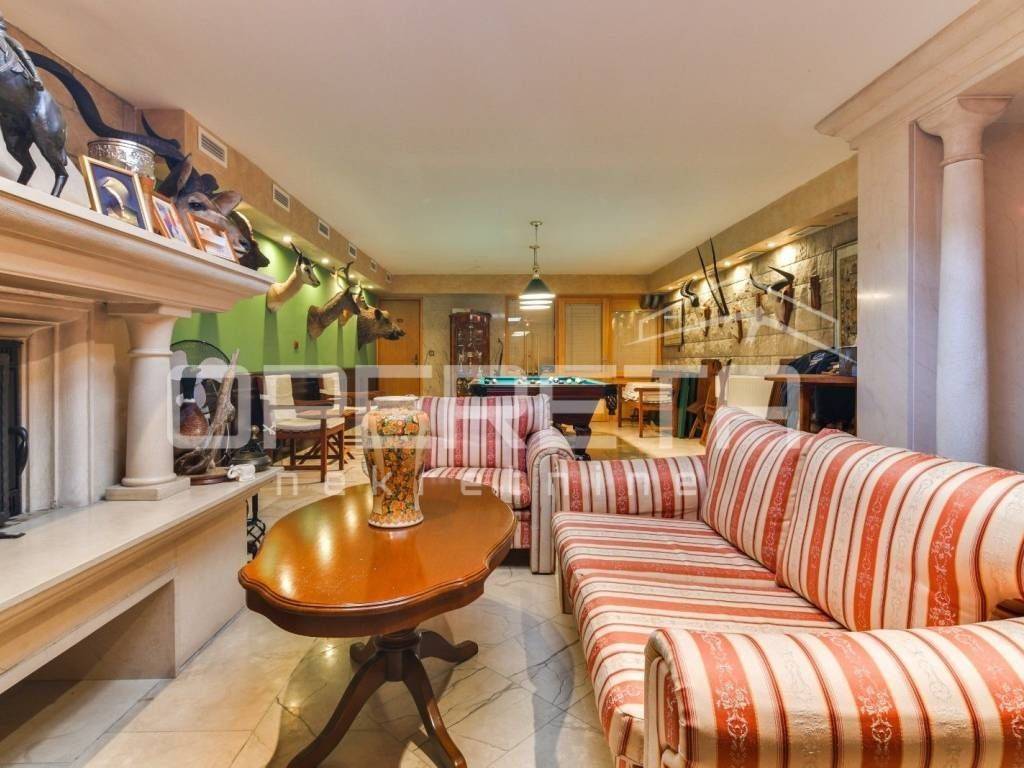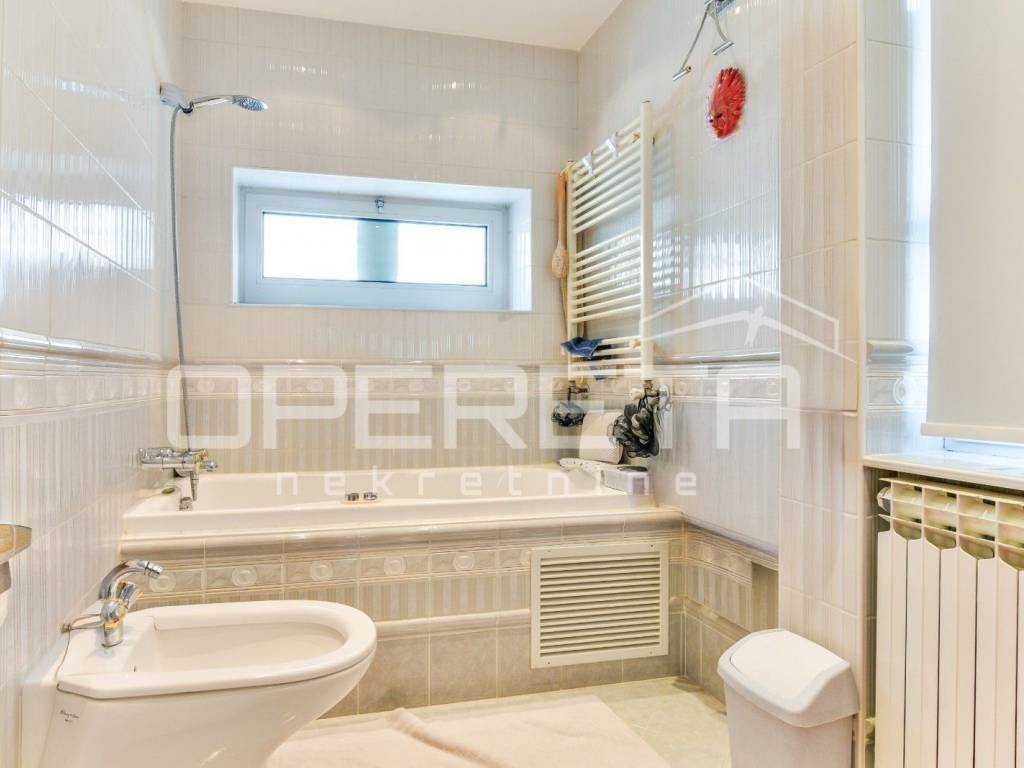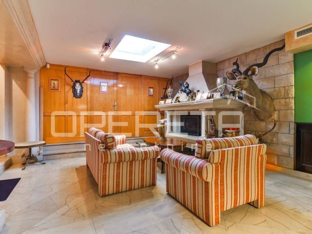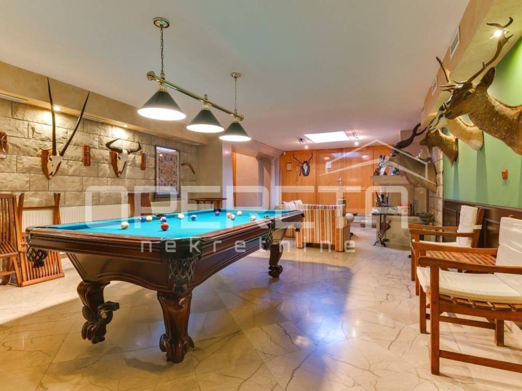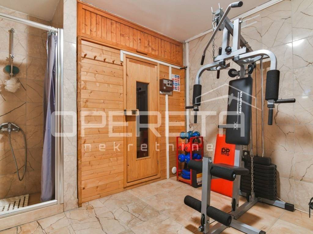 Prije 20 godina temeljito obnovljena i preuređena. Ukupna neto površina 325 m2, 3 etaže, na katu su 3 sobe i kupaona, u prizemlju salon i kuhinja te wc za goste, u podrumu mala garsonjera za poslugu, kino sala, biljar sala, lovačka soba, sauna i trim kabinet. Kuća ima garažu za 2 vozila, vinski podrum, vrt i veoma veliku natkrivenu terasu,