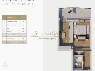 Sastoji se od dnevne sobe, kuhinje s blagovaonicom, spavaće sobe, kupaonice te natkrivenog balkona.
