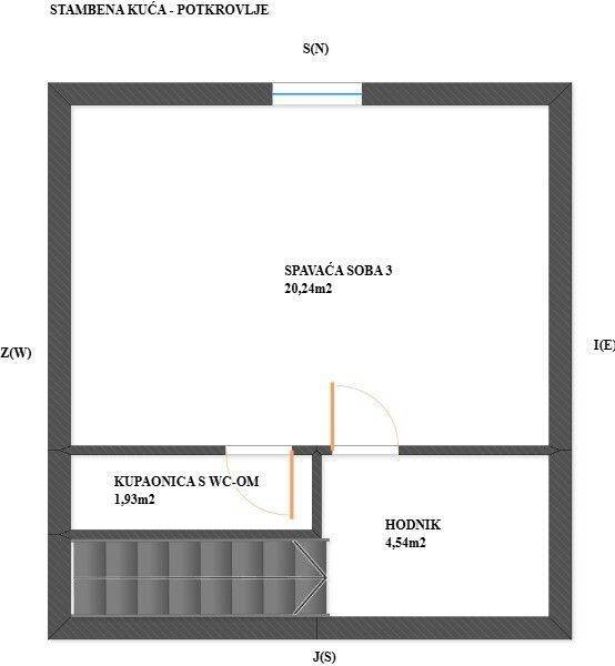 Potkrovlje sa spavaćom sobom s vlastitom kupaonicom i hodnikom