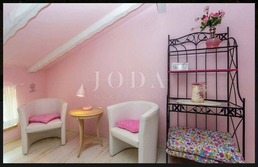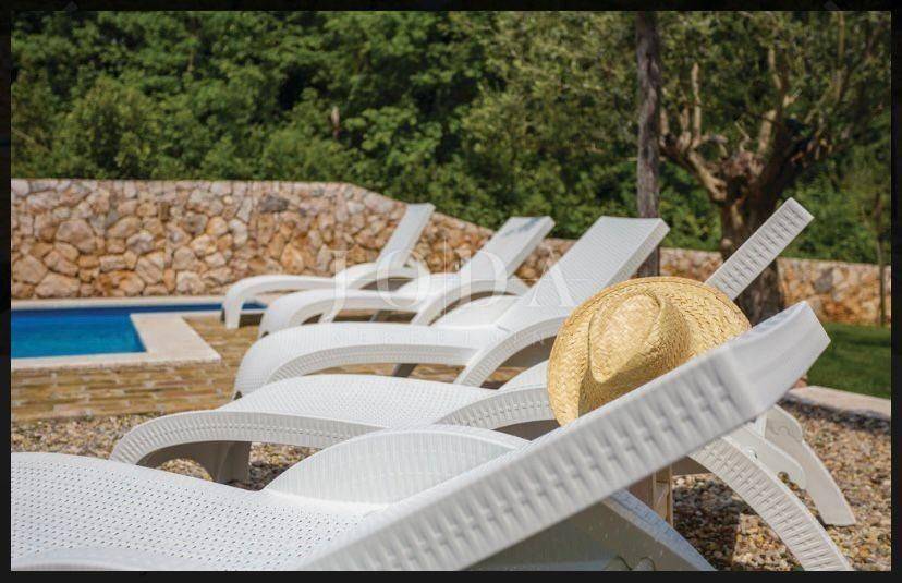 The island of Krk, Šilo, a semi-detached stone house with a swimming pool is for sale. The house consists of a ground floor with an original olive oil processing equipment, a technical room with central heating equipment and a bathroom. An external staircase leads to the living area which consists of a living room with a kitchen and dining room, a bathroom and one room that can be arranged as a bedroom or a study. On this floor there are also two terraces with a view of the swimming pool with a sun deck and from which the garden can be accessed. On the last floor, the high attic, there are three bedrooms and one bathroom. The house has a large landscaped garden of 1,000 m2 with an olive grove and parking spaces. The location of the house provides privacy and is suitable for tourist rental. ID CODE: EI-4797 Josip Šikić, mag.oec Agent s licencom Mob: +385 91 890 4694 Tel: +385 51 403 771 E-mail: info@joda-nekretnine.hr www.joda-nekretnine.hr