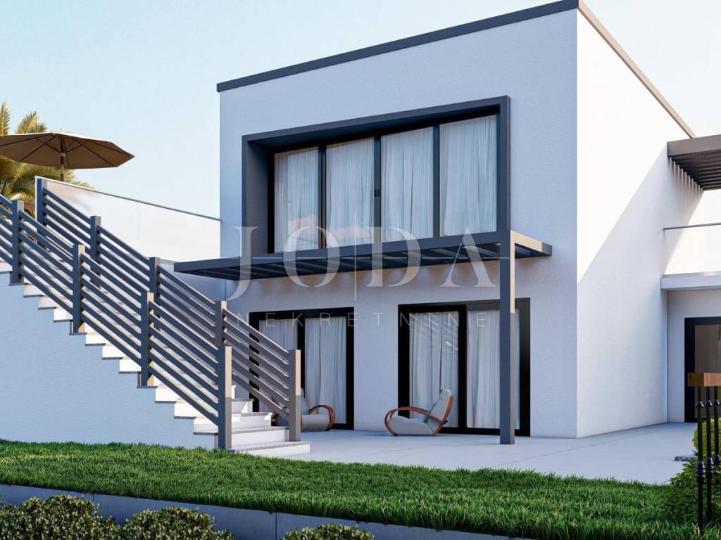 New villa with pool and sea view, near the town of Krk!  Semi-detached house with a total area of 146 m2 with approx. 250 m2 of garden. The house is currently under construction and will consist of three floors. The ground floor will have three bedrooms, hallway and two bathrooms, storage. An internal staircase leads to the first floor, where there is a spacious living room, with kitchen and dining area, hallway and toilet. Internal stairs lead to the roof terrace with jacuzzi. The roof terrace offers panoramic sea views. The landscaped garden has a private pool with sun deck, summer kitchen with barbecue and two parking spaces.  Modern project, quality construction and equipment, quiet location in a beautiful neighborhood surrounded by family houses and villas, about 2 km from the sea.  VAT included in the price, the buyer does not pay real estate transfer tax.  More information - on request!  ID CODE: EI-3743  Josip Šikić, mag.oec Agent s licencom Mob: +385 91 890 4694 Tel: +385 51 403 771 E-mail: info@joda-nekretnine.hr www.joda-nekretnine.hr