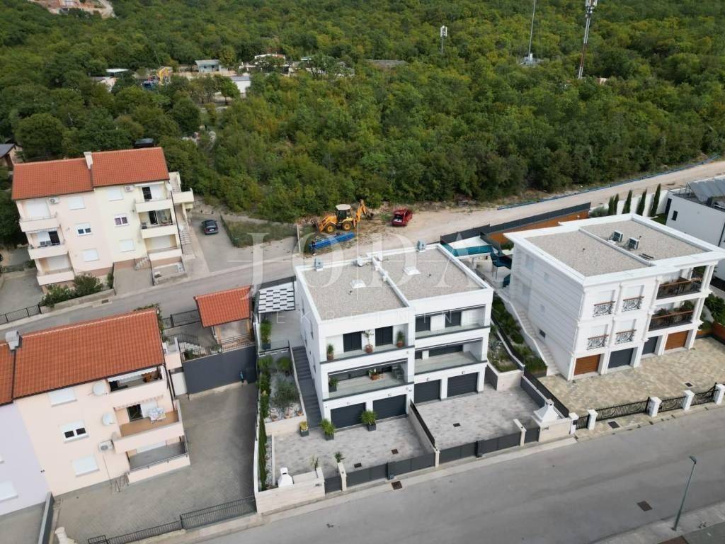 In a great location, surrounded by new urban houses and buildings, a three-story apartment (in nature a semi-detached house) is for sale. Built a few years ago and very little used, but extremely tastefully furnished and functional. In the courtyard, which is entered through a sliding door, there is parking for several cars and the entrance to the ground floor where there is a garage and a part that is arranged as a separate studio apartment or a space for socializing.  The ground floor (height of the 1st floor on the south side) is designed as a living space with a loggia on the south side and a terrace on the back side of the house, inside which there is also a swimming pool and a social area. at the top there are three bedrooms, a bathroom and a balcony with a view of the sea.  The building was built by a verified investor, with high-quality materials, as well as interior additions by the current owner.   The square footage was divided in the following way: apartment S-1 on the ground floor and first floor consisting of 3 bedrooms, living room with kitchen, dining room and a staircase with corridors, bathrooms and 2 toilets with an area of 86.94 m2, with an associated side part loggia with an area of 11.90 m2, which includes a garage with a bathroom in the basement of an area of 54.65 m2 and a part garden area of 162.00  ID CODE: 5186  Josip Šikić, mag.oec Agent s licencom Mob: +385 91 890 4694 Tel: +385 51 403 771 E-mail: info@joda-nekretnine.hr www.joda-nekretnine.hr