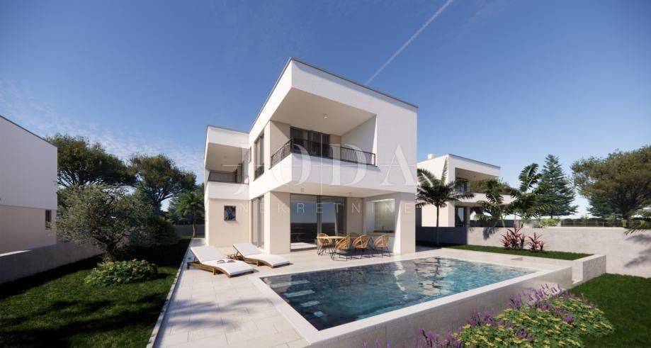 Krk town - surroundings, villa with a pool and sea view! A modern villa under construction is for sale in an easily accessible location, only a twenty-minute drive from the centre of Krk and only a few minutes from the beach. It consists of a ground floor with an entrance hall, an open-concept room that combines the living room, kitchen and dining room, a toilet, two storage rooms, one bedroom with its own bathroom and a covered terrace. On the first floor, which will offer a beautiful sea view, there will be three bedrooms, two bathrooms, a smaller room as a wardrobe and a terrace. The price includes VAT and partial furnishing (custom-made kitchen with appliances, table and chairs, partly furnished living room, beds in the bedrooms, wardrobes, basic bathroom furniture and sanitary ware, TV in the living room).  ID CODE: EI-4901  Josip Šikić, mag.oec Agent s licencom Mob: +385 91 890 4694 Tel: +385 51 403 771 E-mail: info@joda-nekretnine.hr www.joda-nekretnine.hr