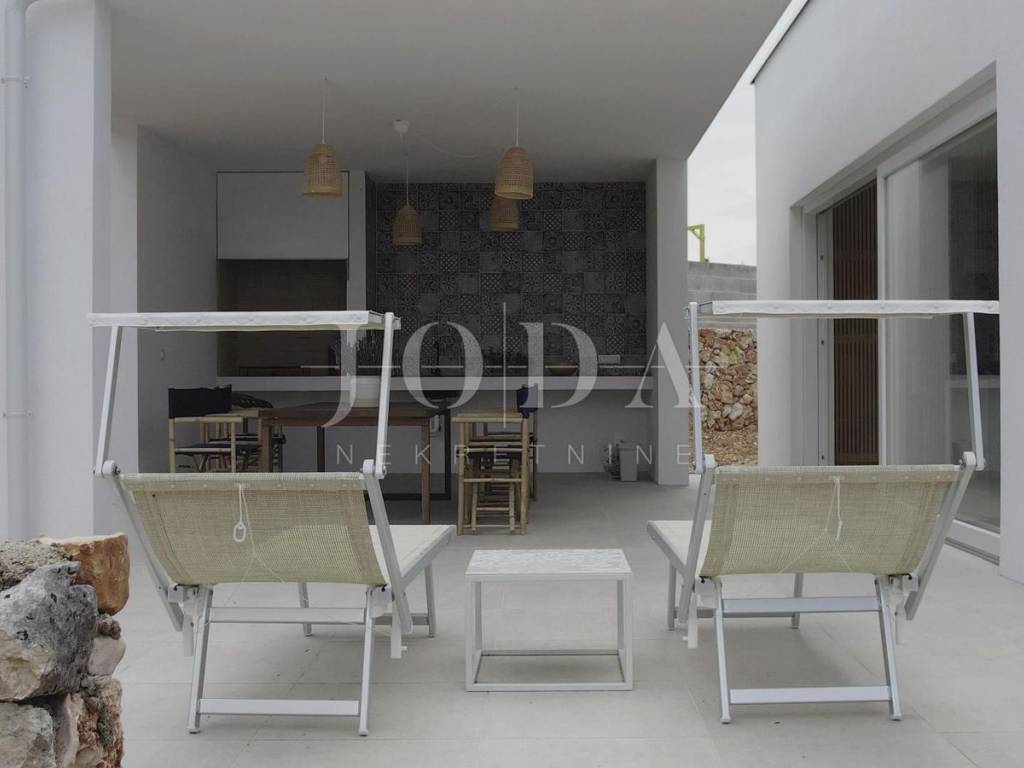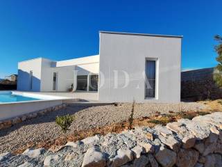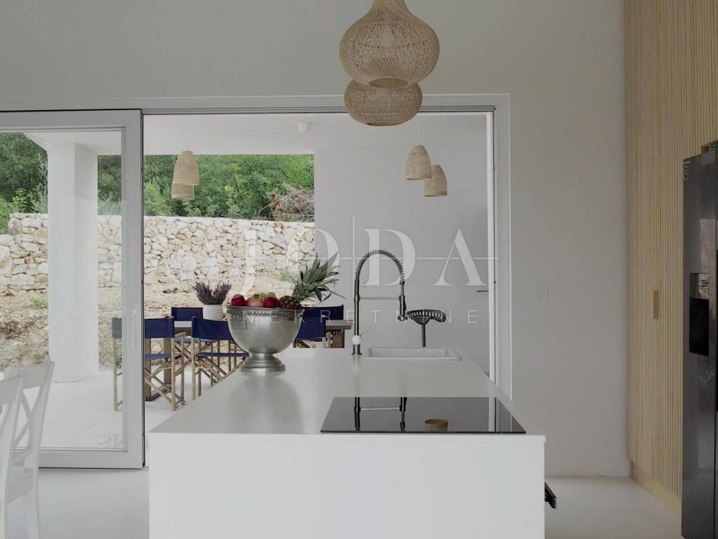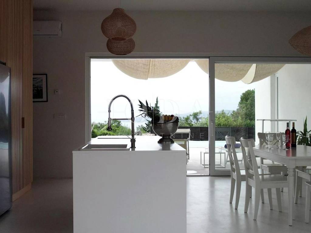 A modern house for sale with a beautiful view of the sea, newly built in a quiet location near the town of Krk. A detached house with a net living area of 111 m2 is located on a plot of 700 m2. In the central part of the house there is a spacious living room, kitchen and dining room with access to a covered terrace on one side, and on the other side access to the sun deck and swimming pool (10 x 3). In the right wing of the house there is a bedroom with its own bathroom, toilet and storage room. In the left wing there are two bedrooms with their own bathrooms. During the construction, modern materials and equipment are used, such as high-quality ceramic tiles and sanitary ware, PVC carpentry, burglar-proof doors and underfloor heating are installed, and air conditioners are also installed. Two parking spaces are available. Property ideal for vacation or family. ID CODE: EI-5491 Josip Šikić, mag.oec Agent s licencom Mob: +385 91 890 4694 Tel: +385 51 403 771 E-mail: info@joda-nekretnine.hr www.joda-nekretnine.hr