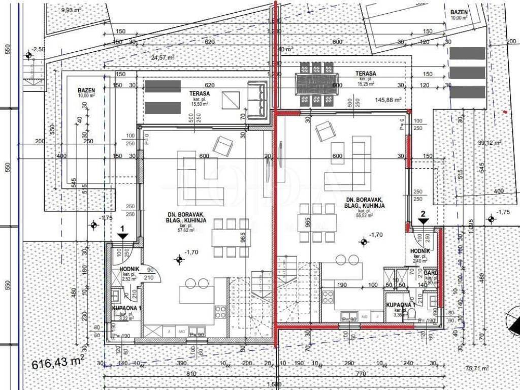For sale is a new semi-detached house with swimming pool and garden - Malinska, island of Krk The house has an area of 156 m2 and extends through the ground and first floor. On the ground floor is an entrance hall, a wardrobe, a bathroom and a large open space that unites the living room, kitchen and dining room and a covered terrace of 15 m2. On the first floor is a hallway, a wardrobe, three bedrooms, each with its own bathroom and two balconies. The house is sold on a turnkey basis, with a landscaped garden with a swimming pool and two parking spaces. Quality construction with underfloor heating using a heat pump system, PVC windows with shutters, air conditioning in all rooms. Moving in is planned for the summer of 2024. VAT included in the price!   ID CODE: EI-5456  Josip Šikić, mag.oec Agent s licencom Mob: +385 91 890 4694 Tel: +385 51 403 771 E-mail: info@joda-nekretnine.hr www.joda-nekretnine.hr