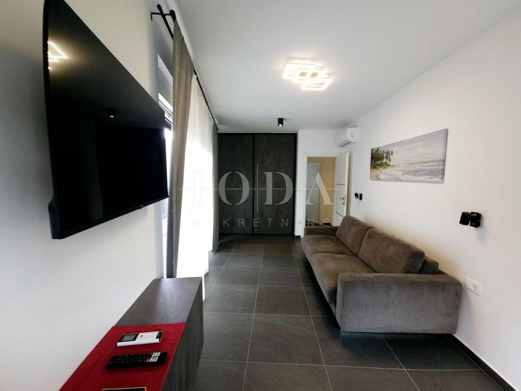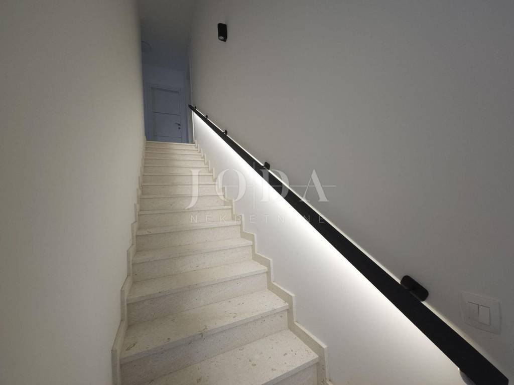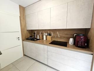A modern semi-detached house is for sale in an excellent location in the very center of Malinska. The house with a total living area of 198.11 m2 with a terrace on the ground floor of 18.11 m2 and a balcony on the first floor of 24.18 m2 extends over two floors, ground floor and first floor. It has two entrances, one is through the garage, and the other is through the outside stairs. On the ground floor there is a garage, a storage room and a tavern (konoba), which is decorated as a studio apartment with a bathroom, a terrace and its own entrance. Internal stairs lead to the upper floor, which is divided into two parts. The first part is larger and consists of two bedrooms, a bathroom, a kitchen with a dining room and a living room, and a balcony. The second part is smaller, designed as a studio apartment with a bathroom and mini kitchen. In front of the house is a beautifully landscaped garden of 222 m2. Parking for three vehicles is available. All necessary amenities are nearby. The property is ideal for living and as an investment for tourism. ID CODE: EI-5863 Josip Šikić, mag.oec Agent s licencom Mob: +385 91 890 4694 Tel: +385 51 403 771 E-mail: info@joda-nekretnine.hr www.joda-nekretnine.hr