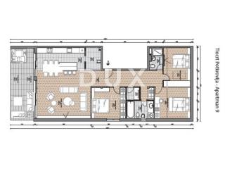 OPATIJA, CENTER - penthouse with a view in a new building above the center of Opatija We offer an exclusive penthouse S9 with an area of 126.08 m2 in the attic of a new building above the center of Opatija, with a terrace and a garage. The apartment consists of three bedrooms with 3 en suite bathrooms, a beautiful open space living room, dining room and kitchen with an area of 46.14 m2. The large open space opens onto a 20 m2 terrace with a jacuzzi and an outdoor area for socializing, which provides incredible opportunities for outdoor relaxation. The apartment is located in a new building of 10 apartments in a prime location - above the center of Opatija, thus guaranteeing excellent access to all the city's amenities - the Lungomare promenade, the beach in the center, the summer stage in Opatija and the Gervais cultural center. It is located 250 meters as the crow flies from the sea. The apartment comes with a storage room and a garage space. This is a perfect opportunity to buy a property in Opatija, perfect for living, as well as for tourist rental. Dear clients, the agency commission is charged in accordance with the General Terms and Conditions. https://www.dux-nekretnine.hr/opci-uvjeti-poslovanja ID CODE: 29929 Marko Šutanovac Agent s licencom Mob: +385 91 189 8332 Tel: +385 91 480 8808 E-mail: marko@dux-nekretnine.hr www.dux-opatija.com