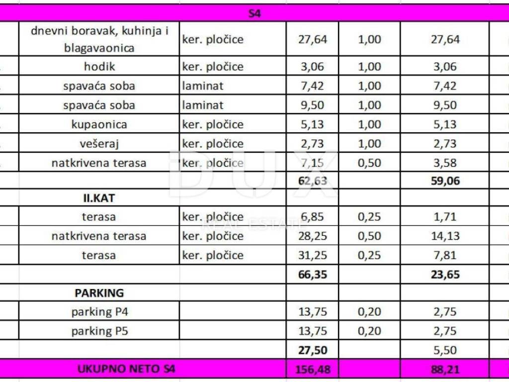 ZADAR, VIR - Top-class apartment with a roof terrace and a beautiful sea view! New construction! S4.   In a modernly designed new building, located in a quiet and attractive area, there is a luxurious apartment on the first floor with a private roof terrace that offers a spectacular panoramic view of the sea. This exclusive property is an ideal choice for those looking for the perfect combination of comfort, elegance and a Mediterranean lifestyle. The apartment consists of two spacious bedrooms, an elegant bathroom, a bright and airy living room and a modern kitchen with a dining area. Additional functionality is provided by a practical laundry room, while the apartment has three air conditioning units for heating and cooling and underfloor heating in the bathroom, ensuring a pleasant temperature throughout the year. What makes this property truly special is the spacious private roof terrace with preparation for a summer kitchen, jacuzzi and luxurious sundeck. The terrace is partially covered, and there is also the possibility of closing the space with glass walls, creating a unique oasis for relaxation and socializing with an unforgettable view of the sea. The building, in which there are only four apartments, was built according to the highest construction standards and stands out with top quality PVC carpentry with electric blinds and luxurious sanitary equipment. Each apartment has a separate connection to the public water network, drainage and electricity, while two parking spaces are provided. The environment consists of newly built villas and duplexes with swimming pools, providing peace and an exclusive ambience. The island of Vir, known for its crystal clear sea, beautiful beaches and rich offer of facilities, is one of the most desirable places for living and vacationing on the Adriatic. Its proximity to Zadar enables a perfect combination of relaxed island life and the availability of all urban facilities. Don't miss the opportunity to secure your piece of paradise - contact us for more information and to arrange a viewing!   Dear clients, the agency commission is charged in accordance with the General Business Conditions www.dux-nekretnine.hr/opci-uvjeti-poslovanja  ID CODE: 37647  Josip  Šestan Agent s licencom Mob: +385 91 799 6986 Tel: +385 91 480 8808 E-mail: josip@dux-dalmacija.com www.dux-dalmacija.com