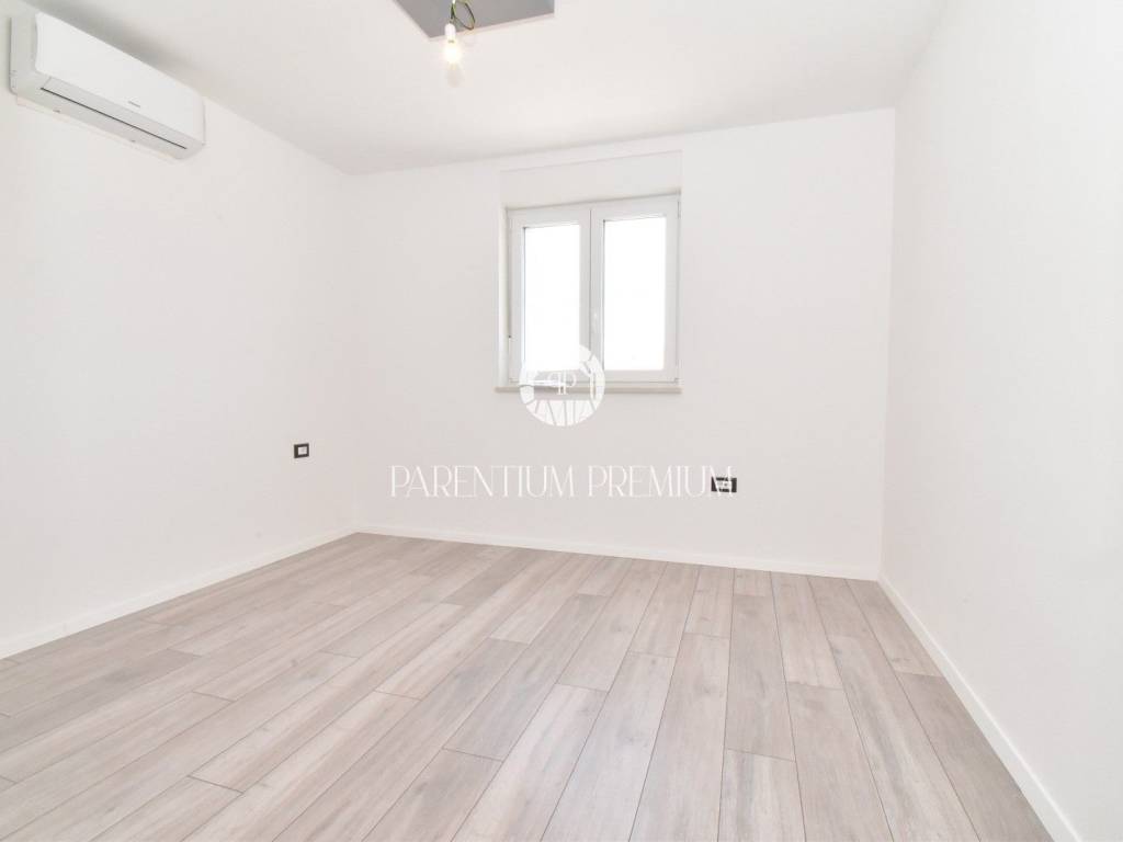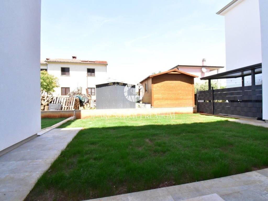 Ground Floor Apartment with Garden and Extended Terrace – New Build, Poreč (5 min from center)High-Quality Construction – Peaceful Location with Infrastructure, Ideal for Living or RentingFor sale is a modern and functional ground floor apartment in a newly built residence, located just 5 minutes’ drive from the center of Poreč. The neighborhood is fully equipped with all necessary infrastructure – shops, restaurants, school, and kindergarten – making it ideal for comfortable everyday living.The apartment has 59 m² of interior space and includes:Two bedroomsOpen-plan living room and kitchenModern bathroom with underfloor heatingThe standout feature of this property is its private outdoor space totaling approx. 80 m², which includes:A rear garden of 56 m²A front extended terrace and yard of 23 m²There are three direct access points to the garden and terrace:From the living room to the front terraceFrom the bedroom directly to the gardenFrom the kitchen to the gardenA perfect setting for outdoor relaxation, family gatherings, barbecues, or enjoying privacy surrounded by greenery.Property Features:Ground floor apartment with private garden and large terraceApprox. 80 m² of private outdoor spaceDirect access to the garden from the living room, kitchen, and bedroomHigh-quality construction by a renowned and reliable developerAir conditioning in every roomUnderfloor heating in the bathroomExcellent thermal and sound insulationSecurity entrance doorPrivate parking spaceQuiet, safe location with quick access to the cityIdeal for:Year-round livingFamilies with children and petsInvestment for tourist rental