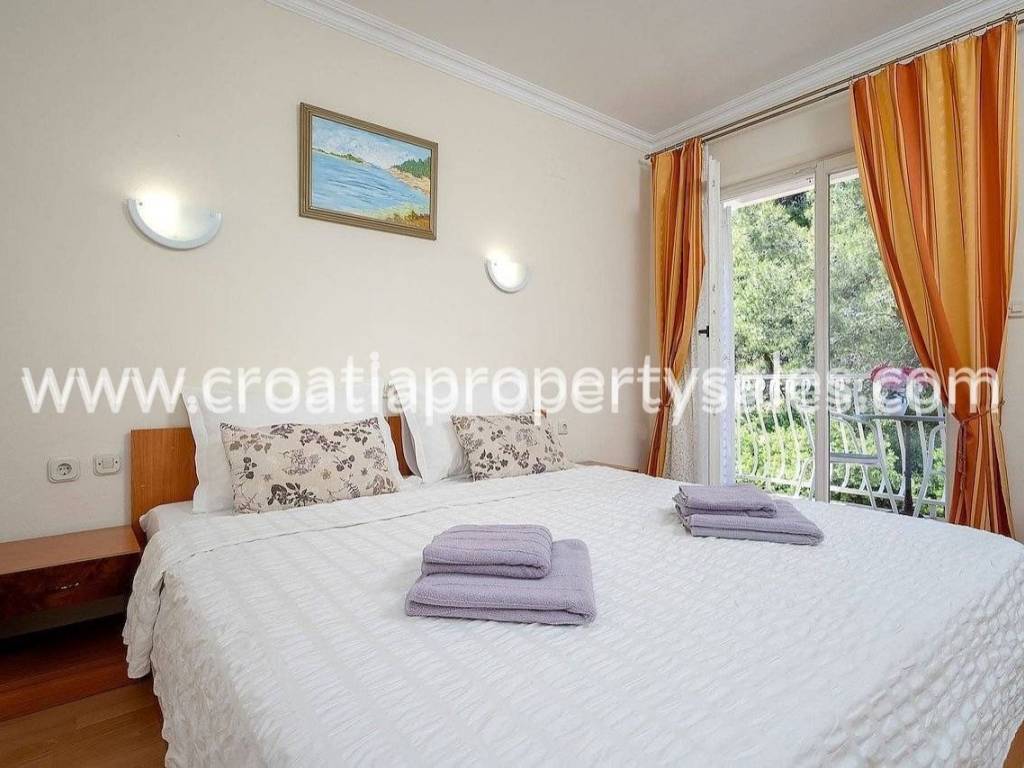 Detached apartment house with eleven apartments.Eight apartments are finished and in use, while three are unfinished.In front of the house is a road leading to the city center, and there is also a large parking lot with 6 parking spaces. The building consists of a basement, ground floor, first, second floor and loft space.The plot has 720m2 and the house has about 800 m2 of living space.The whole garden is beautifully decorated and surrounded by a stone wall.Each apartment is fully furnished. The house has solar panels for the use of hot water, as well as built-in air conditioners.The apartments are south oriented, and the whole house is of high quality construction.The building is thermally insulated inside and out.The property is in a great location, close to restaurants, shops and beaches.