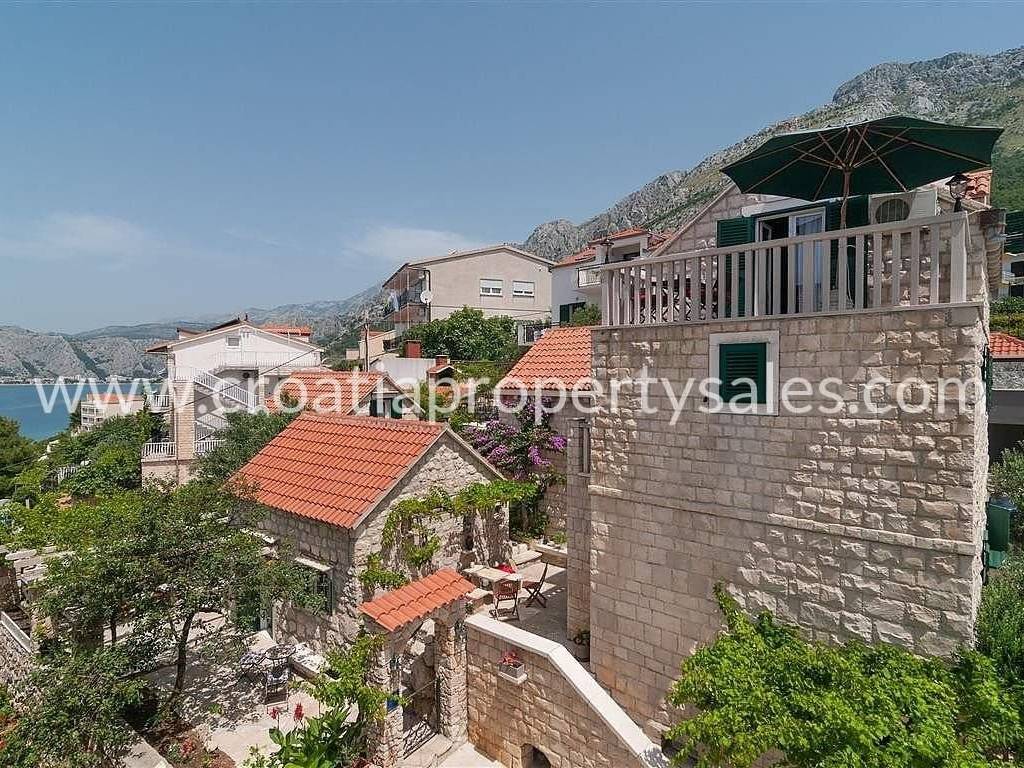New in our offer!We are pleased to offer you this traditional stone house near Omis, just 70 m away from the sea and a beautiful pebble beach.The property consists of a main house and three separate units, smaller, completely renovated stone houses. Each of them is a studio apartment with a kitchen, living room and bathroom, and a bedroom.On the ground floor of the main house there is a garage that has direct access to the house, kitchen, spacious living room, bathroom and separate studio apartment. On the first floor there are two bedrooms with bathrooms, laundry, storage room and office. On the second floor there is a guest studio apartment with a large terrace with a beautiful sea view. In the basement there is a beautifully decorated wine cellar.In the tastefully landscaped courtyard there is a barbecue grill.Due to its location and layout, this property is ideal for all those who want to combine rental business and everyday life.Distance from the sea: 70 mDistance from the airport: 35 kmFor more information, our office in Split is at your disposal.