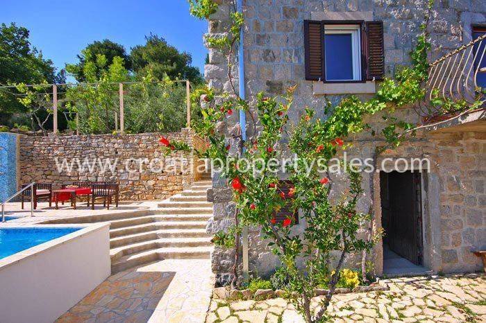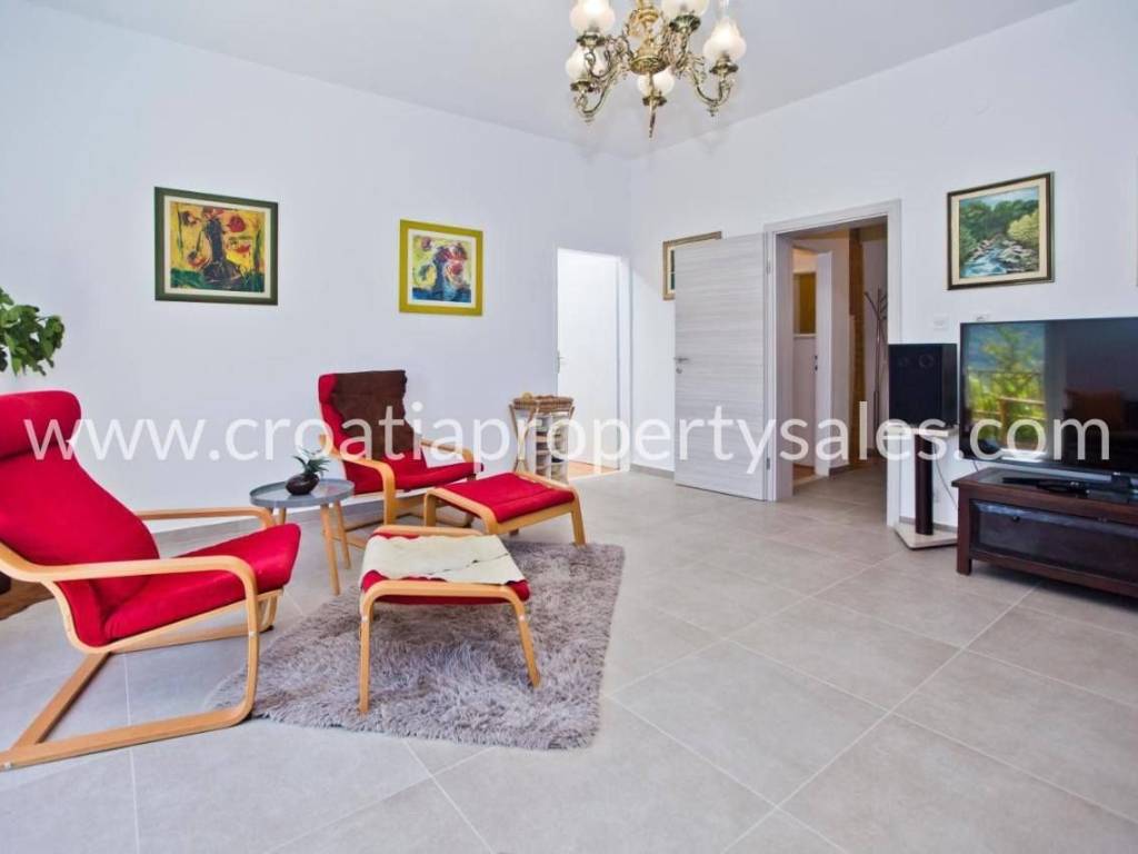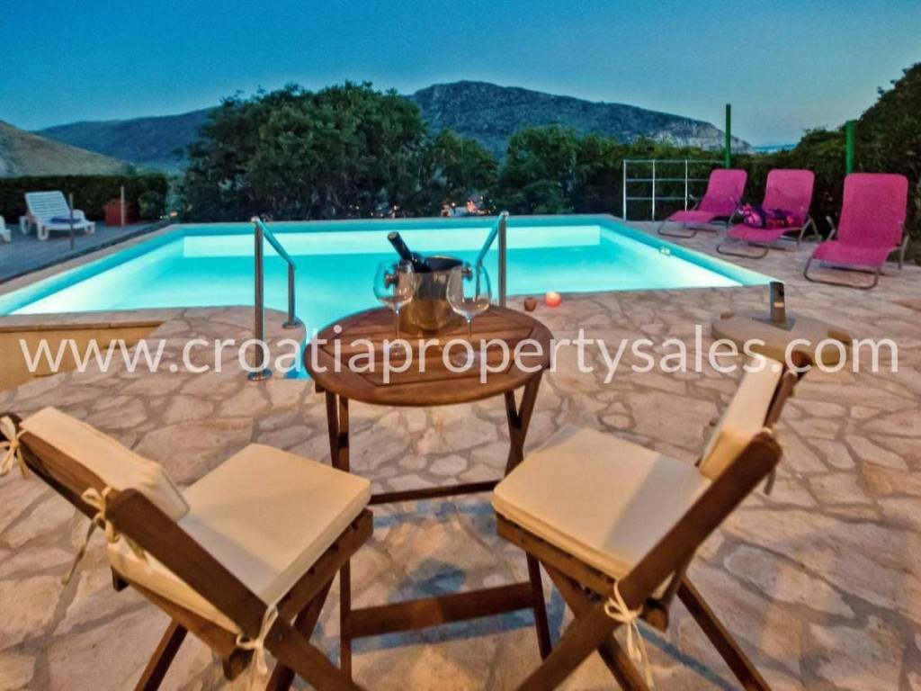Detached stone house near Split. It consists of three apartments with separate entrances. On the ground floor there is a one bedroom apartment with access to the sun terrace under which there are two rooms for renovation. On the first floor there is a two bedroom apartment with a bathroom, living room and dining room, laundry room and balcony. On the second floor there is a one bedroom apartment with kitchen and bathroom with access to a balcony that is big enough for socializing and barbecue.The outdoor pool and the stone environment offer an excellent blend of modern and traditional.The location of the house offers peace and privacy, and yet it is within easy reach of Split.