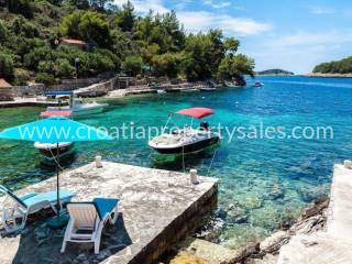 Beautiful house in the first row to the sea in a small cove on Korcula.The house extends over three floors and has a beautiful garden with a swimming pool and barbecue, as well as outdoor parking for several vehicles.It has about 400 m2 of total gross living area, and is located on a plot of 690 m2. On each floor there is one spacious apartment with a wonderful view of the sea and the bay. The first two floors as well as the outer part are completely furnished, while the last floor is not finished.On the first floor, there is an apartment with a layout that includes a hallway, four bedrooms, two bathrooms, an entertainment room with a pool table and table football, and an open area of the living room, kitchen and dining room.The living room is connected to a covered terrace where there is an outdoor fireplace and a dining and sitting area. The terrace then extends to the open courtyard where there is a 24 m2 swimming pool, an outdoor shower and a sunbathing area.On the second floor is an apartment whose layout includes a hallway, three bedrooms, two bathrooms, and an open living room, kitchen and dining room with access to an open terrace with an unobstructed view of the nearby sea.On the third floor there is unfinished space ideal for another apartment as well as a large covered terrace ideal for enjoying summer evenings.