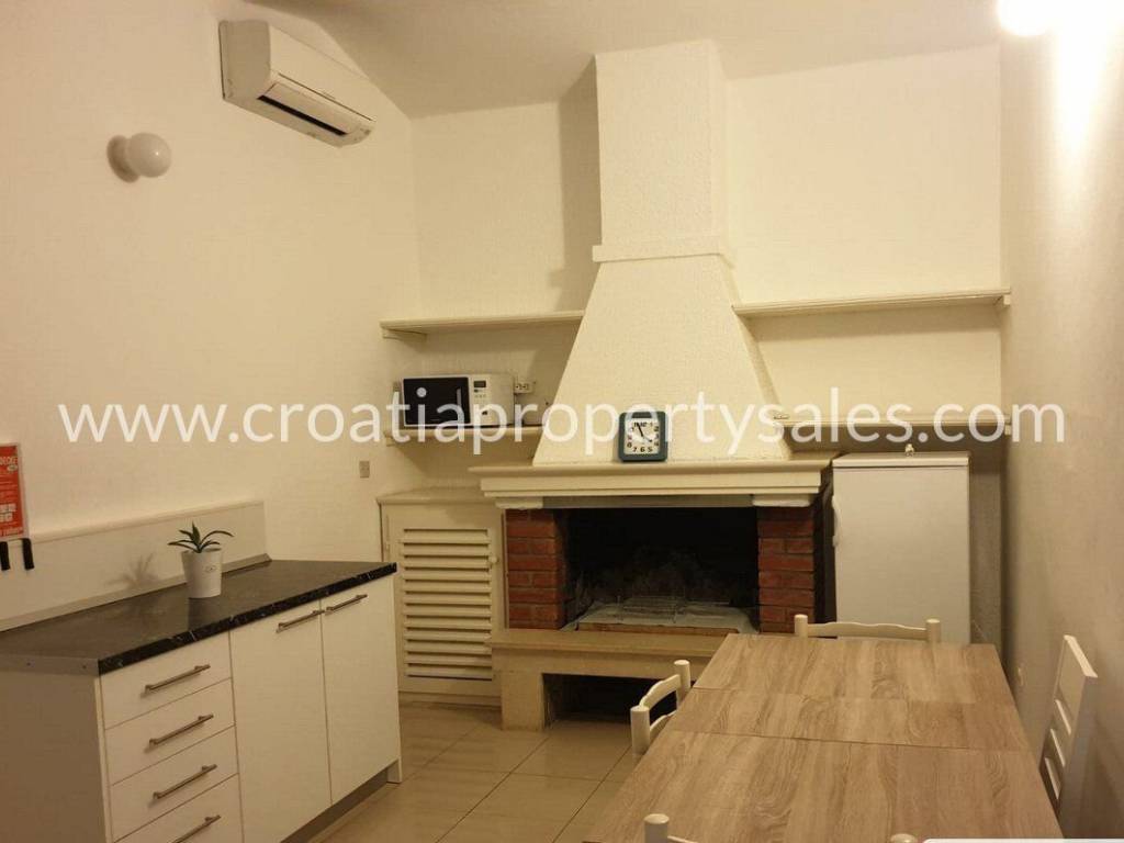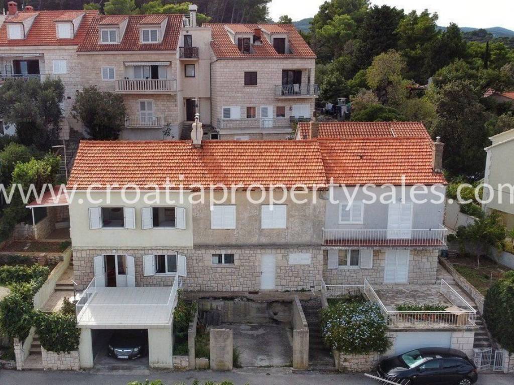 Completely renovated and furnished house in one of the most beautiful parts of the town of Korcula.What distinguishes this property the most is its location, it is only 100 meters from the beach, and 300 meters from the old city center, and with all that, it enjoys peace and privacy while overlooking the entire city and the Peljesac Canal from an elevated position.The garage should definitely be highlighted as a big advantage.The house is built on two floors.It consists of a total of three bedrooms, and there is the possibility of getting a fourth with minor conversion, two bathrooms, kitchen, dining room, living room, additional kitchen with dining room and indoor fireplace, and two storage rooms and two corridors, a total of 125 m2 of living space.A covered terrace of 20 m2 and an uncovered terrace of 30 m2 should definitely be singled out, as part of the exterior of the building.It is not necessary to invest anything in the building, it is ready to move in immediately.