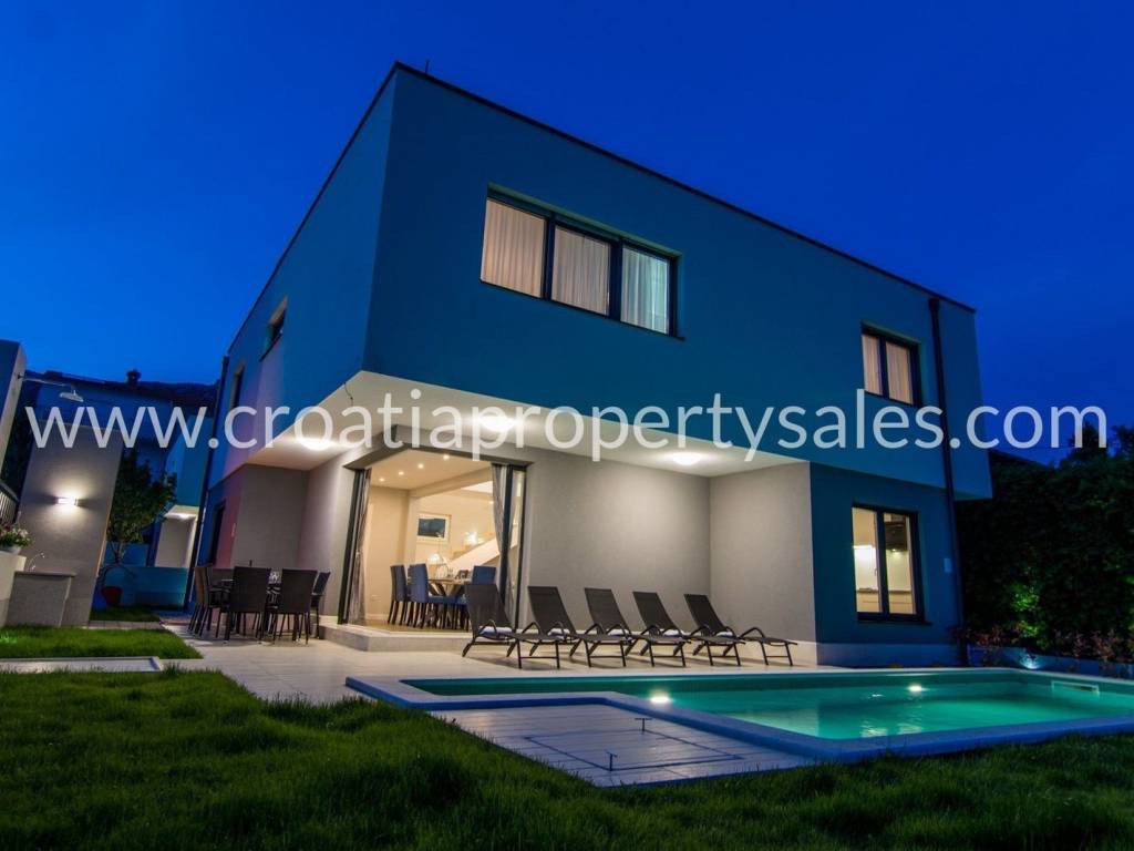 Two beautiful villas in a quiet location in Kastel Kambelovac and only 350m from the sea.They are categorized with 5 stars.The exterior and interior architecture of the villa delights with simplicity and style, designed on two floors connected by internal stairs and a central gallery with a total of 5 bedrooms and 5 bathrooms in each villa.Each villa has a total net 202 m2 of living space, with its luxurious interior, outdoor and covered terrace, swimming pool, fireplace and outdoor shower with a beautiful landscaped garden allows for peace and relax.Pebble beach, restaurant, town center and all necessary facilities are only 300 m away from the villa, and in the center you can feel the charms of a traditional Dalmatian fishing village.Villas are a great investment opportunity. Both for tourist rentals and for private use.