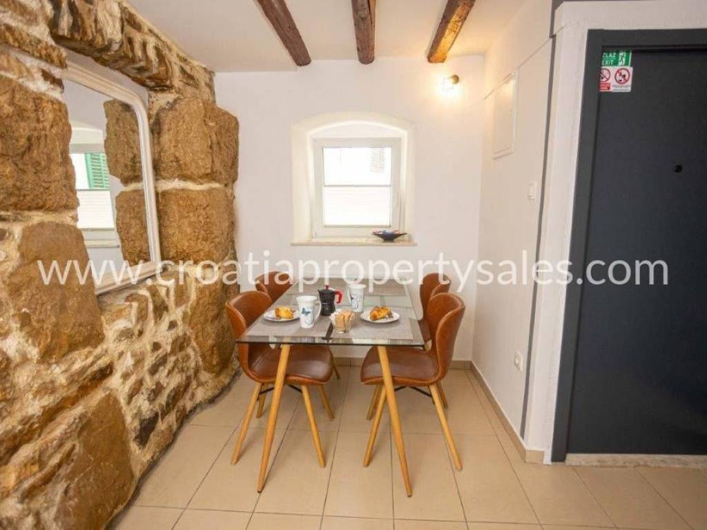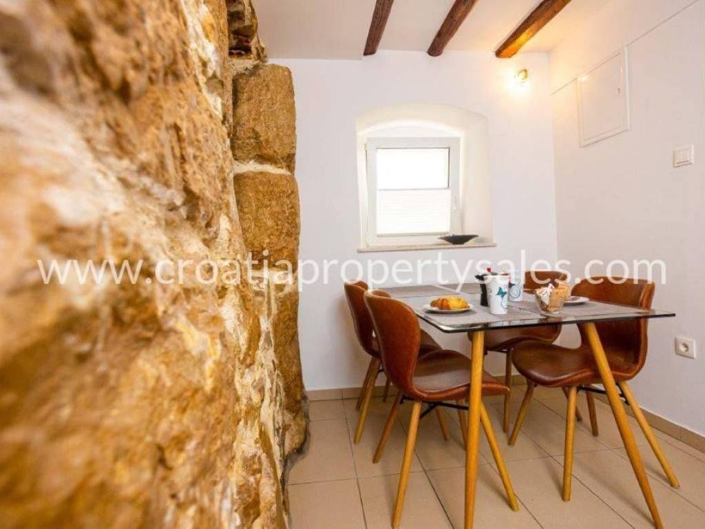 Stone house in the center on two floors with the possibility of adding another floor.It is located in a quiet hidden street in the old part of the city.The house has a total of 45 m2 and consists of a kitchen, dining room and bathroom on the ground floor and a bedroom on the first floor. It is south oriented.Completely renovated and no additional investment required.All everyday facilities are available on foot in just a few minutes. It is only a 5-minute walk to the Riva. Access by car is possible nearby.This real estate is an ideal investment in tourism and is categorized.