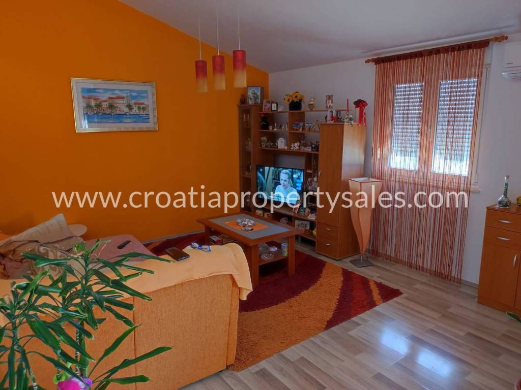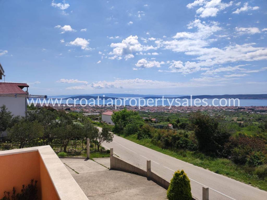 Detached house in a quiet part of Kastela with a beautiful sea view.It consists of the ground floor and one upper floor.On the ground floor there is a spacious garage and a one-bedroom apartment.Upstairs there is a big three bedroom apartment, consisting of a living room with dining area, three bedrooms and two bathrooms, and a large terrace with sea view.The property offers a range of options due to the location and size of the land.The house does need some modernization on the inside.Around the house is a big courtyard, partially paved.