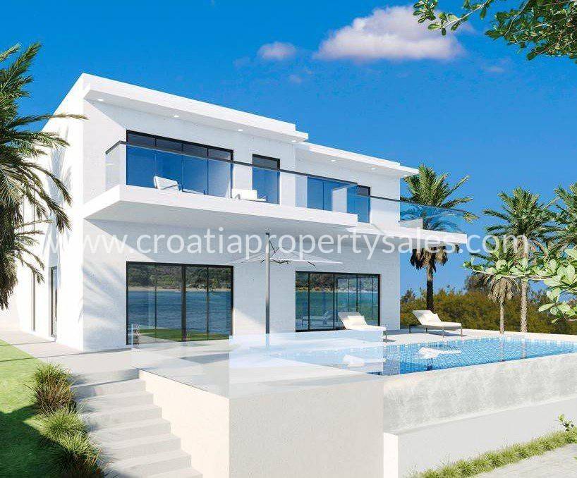 In a quiet part of a small town not far from Omiš, we offer for sale a villa in the unfinished stage.The villa is designed as a modern two-storey house, it is located on a plot of land of 540 m2, while its area will be 230 m2, and on two floors it offers enough space for comfort.The ground floor will consist of an entrance hall, bathroom, storage room, kitchen, dining room, and living room. Large glass walls are planned throughout the living room and dining room, which will allow the inflow of sunlight and illuminate the entire living room.An elegant staircase leads to the first floor, where there are 4 bedrooms, 2 bathrooms, and a laundry room that can be converted if desired.The central place in the garden is intended for the construction of a swimming pool with a sunbathing area.Due to its location, environment and contents, this villa is an excellent investment for vacation or business in tourism.