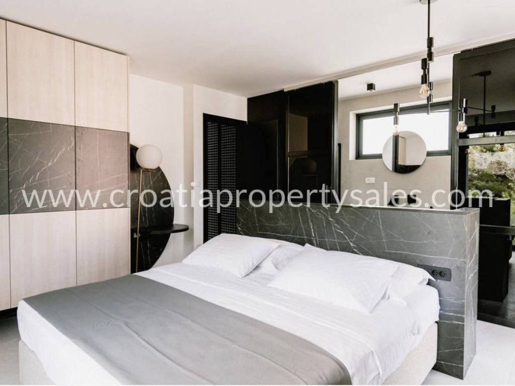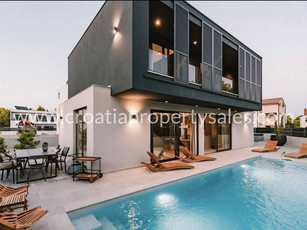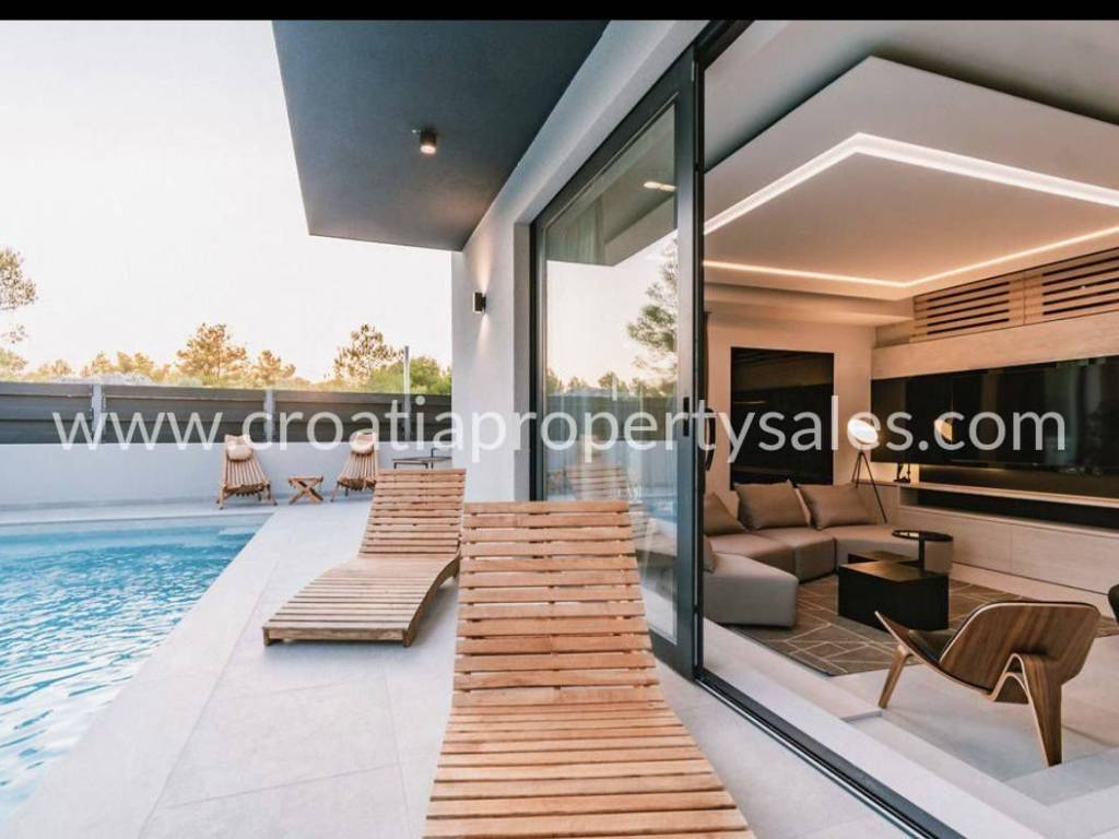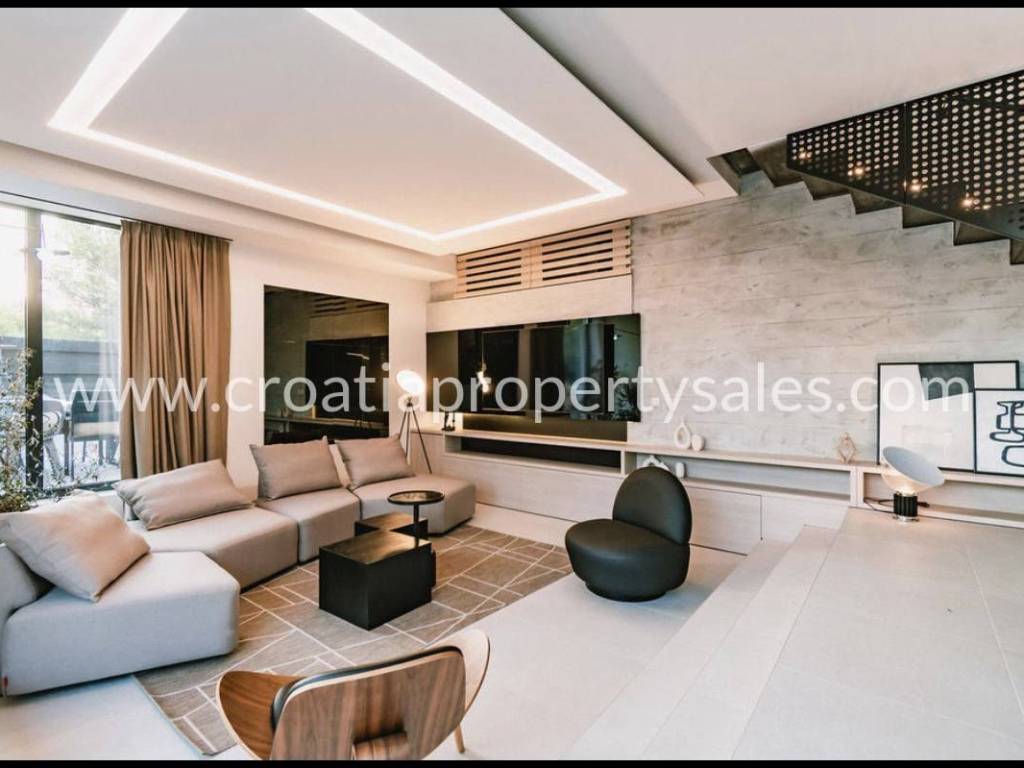A luxurious villa in a quiet location, decorated with modern, luxurious and high-quality furnishings.The area of the villa is 154 m2, and it is located on a plot of 400 m2.The sea and the beach are only 300 m away.The villa is divided into two floors. On the ground floor of the villa there is a bedroom with a bathroom, a utility room, a living room, a kitchen with a dining room from which there is access to a terrace with a sun deck, a lounge area, a jacuzzi and a 40 m2 swimming pool.Upstairs are three bedrooms, two of which have separate bathrooms. Each room has an exit to the terrace.The yard is nicely decorated.There are also parking spaces within the garden.The villa has all the necessary infrastructure.