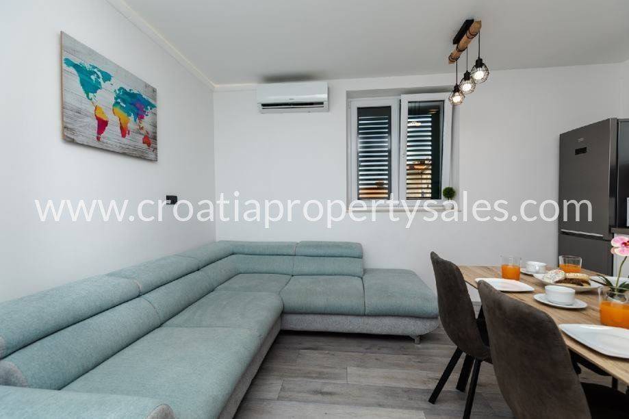 In the city center, in a nice location, an apartment on the 3rd floor is for sale.The apartment is 75 m2 and is divided into two one-room apartments with separate entrances and a common hall.The apartments are equipped with electronic card locks and a video camera that records the entrance hall.In the hall there is a custom-made wardrobe with two washing machines, as well as additional places for storing bed linen.The apartment was completely renovated in 2021 and is modernly equipped.An ideal investment for renting to tourists, and is currently being used as such.