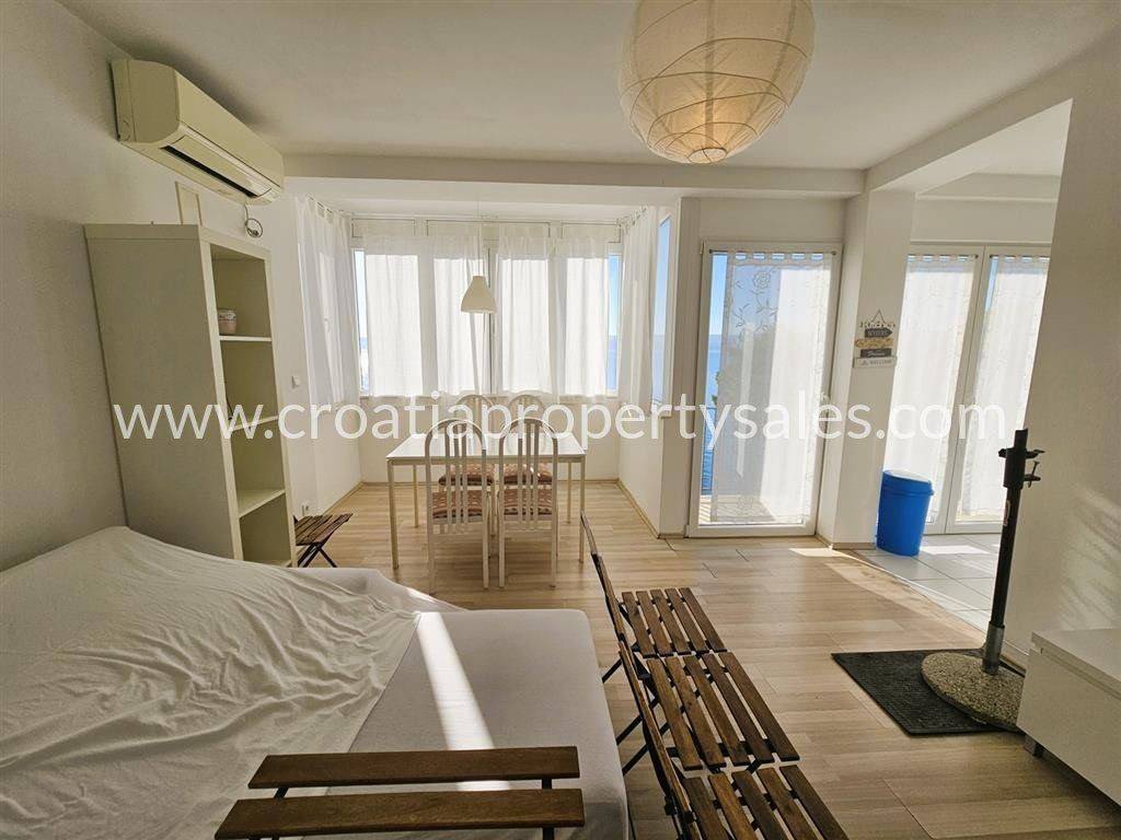 HOUSE BY THE SEA 429 m2 WITH AN OPEN VIEW IN AN EXCELLENT LOCATIONThe house is located in an extraordinary location in a picturesque place on the Omiš Riviera, only 40 meters from the sea and pebble beaches with a wonderful view of the sea and islands.Considering the micro environment, it offers a unique opportunity to simultaneously enjoy the clear sea on beautiful beaches, the possibility of trekking, hiking and mountain climbing in the mountains above the place, as well as river activities in direct contact with lush nature in the nearby Cetina river canyon.The house with an area of 429.28 m2 is located in the center of the town in a quiet environment on a plot of 442 m2 that extends to the road above two beaches and serves as a summer terrace covered with Mediterranean vegetation.The house is divided into six apartments of different sizes and auxiliary rooms and is currently used for tourism and temporary accommodation (floor plan attached). In front of the entrance there is a private fenced parking lot with four parking spaces.On the second floor of the building, there are two newly renovated apartments with a total area of 132 m2 with terraces overlooking the sea and the islands. On the first floor, there are two large apartments with a total gross area of 168.78 m2, which were renovated about twenty years ago, and renovation is desirable, but not necessary. On the ground floor there are two apartments with a total area of 96.50 m2, while on the part of the plot closest to the sea there is an auxiliary room with an area of 32 m2. The possibility of taking over the complete furniture according to the customer's wishes. The house has water and electricity connections and two septic tanks. Documentation and papers in order.For any additional questions, please contact our office in Split