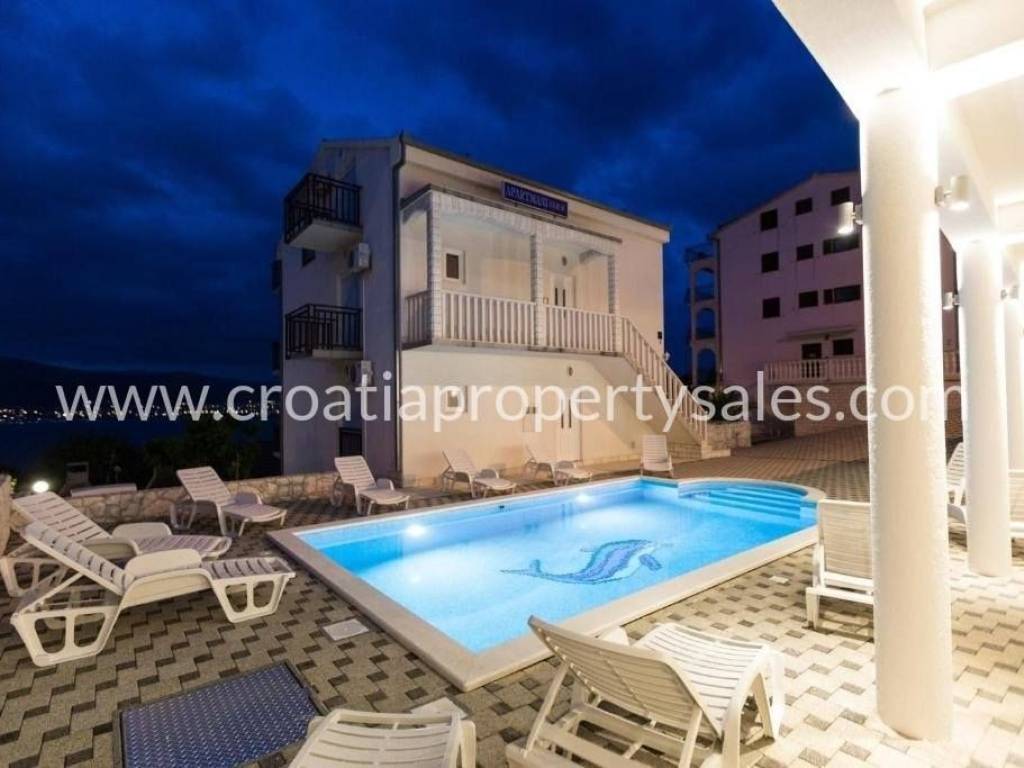 We are pleased to present this apartment house on the west side of Ciovo island, with a beautiful sea view.It is located near a stone beach that provides privacy and relaxation. This house is located in a peaceful area, surrounded with nature and forest. The house consists of a ground floor, 1st floor and an attic and it has a total of 7 apartments.On the ground floor and 1st floor there are 4 apartments, completely furnished and each of them have 2 bedrooms. In the loft space there are 2 separated apartments with one bedroom. Also, in the basement area is one completely furnished 1-bedroom apartment.There is a total of 327 sqm of living space while the whole plot has a total of 678 sqm. In front of a house is a swimming pool of 32 sqm and an area with loungers that provide a nice sea view.There is also a spacious terrace, also with loungers that provide a sea view, an area with 2 bbq and big tables with chairs for eating and enjoying outside. Around the house there are stone plates, coated with staircases made out of Brac stone, the same one the White House is connected with.There are 7 parking places in front of the house.This house is suitable both for living and renting during the season, since the owners had established a good business. The center of Okrug is 10 min by car, while the international airport is 20 min away by car.For more information, please contact our office in Split.