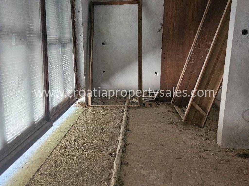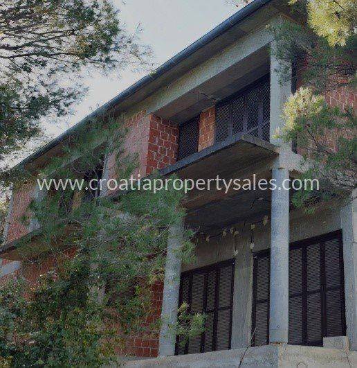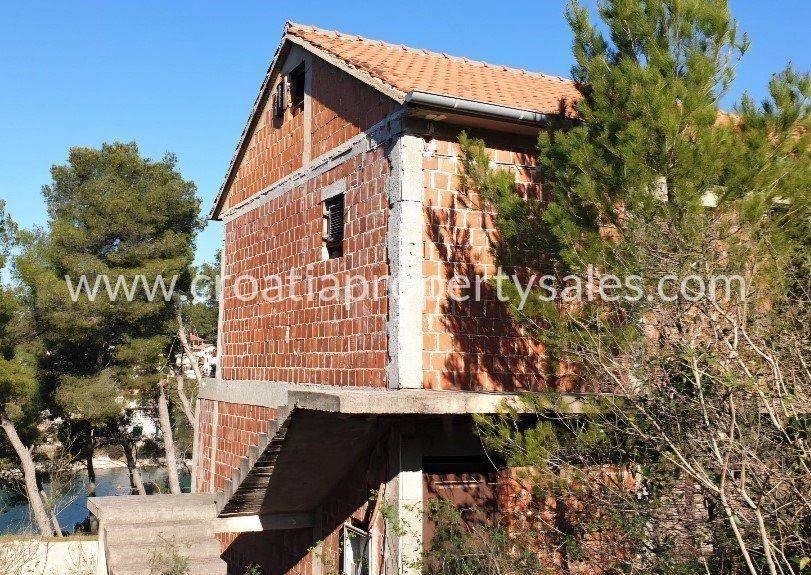 Unfinished house in an attractive and quiet location in the first row to the sea.Up to this stage, the house has been built to a very high standard, and very well and practically designed. Installed installations for electricity and water.The house has two floors with a total area of 215 m2. On the ground floor, there is a large living room that is designed in a cascade, has an installed chimney, the possibility of installing a wood stove. There is also a kitchen and 3 large rooms with attached bathrooms on the ground floor.The ground floor is 115 m2 and has high ceilings, which contributes to the impression of an open space. External stairs lead to the second floor of 105 m2 where there are three apartments.The entire plot is surrounded by dry stone walls, and given the size of the plot, the future owner has numerous options for decorating the outdoor space and garden.
