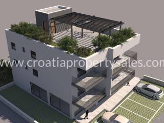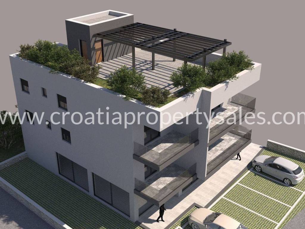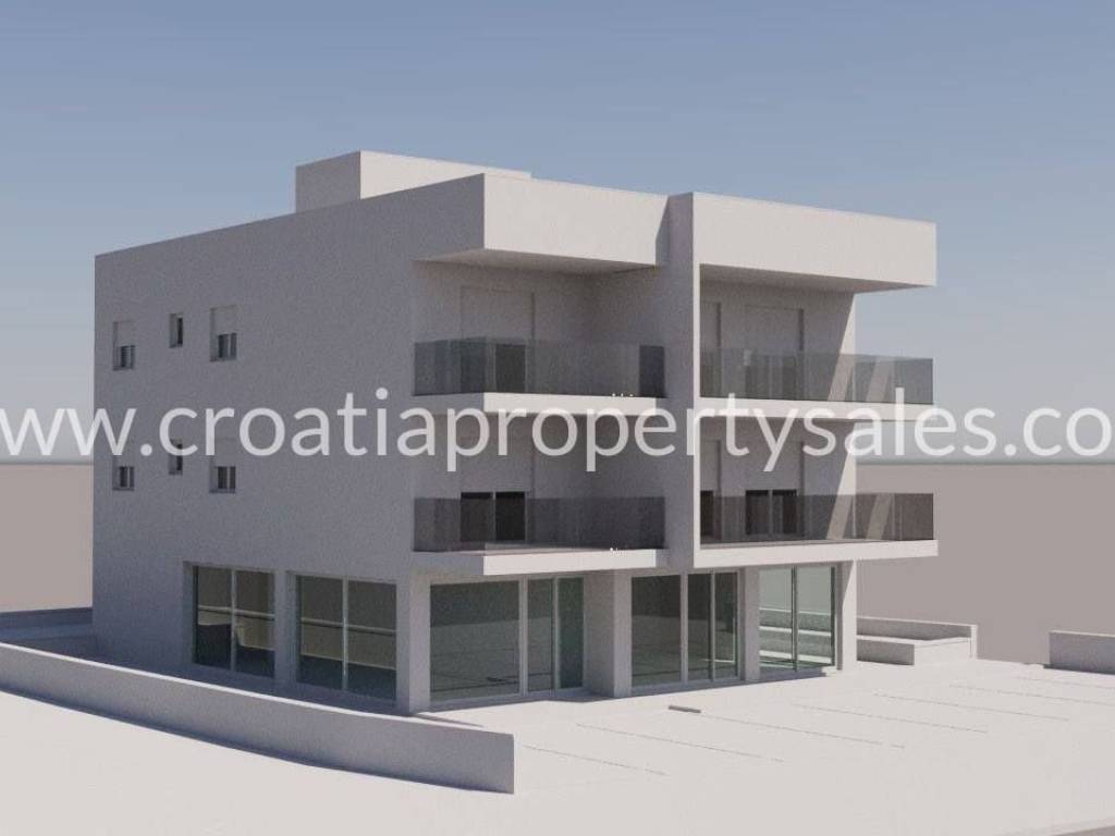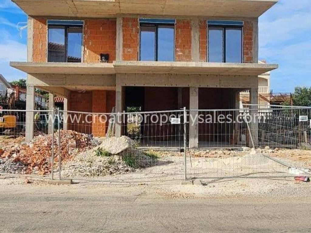 New construction in our offer. Located in Okrug, this building consists of 4 apartments in total, with a business space on the ground floor area. Located in a busy area, close to the small center and just 350 m from the sea, well connected with the roads leading off Ciovo. Construction is already ongoing, and the planned completion is February 2025. FIRST FLOOR: S1 – 2 bedrooms, 2 bathrooms, kitchen and living room area, storage – 54,59 m2 + 15 m2 covered balcony – 220.000€ SECOND FLOOR:S3 - 2 bedrooms, 2 bathrooms, kitchen and living room area, storage – 54,59 m2 + 15 m2 covered balcony and roof terrace of 83,39 m2 – 270.000€Each apartment will have floor heating in the living room and kitchen area while every room will also have an A/C unit. Windows and balcony doors will have automatic shutters and mosquito nets included. Since the building is in high constriction at the moment, payments will still be done in installments but with a higher first payment. This is a nice location for tourist rentals so it can be a good business investment. One parking space per apartment is included in the price. For more information, please contact us.