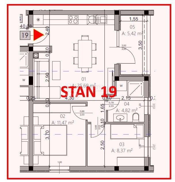Flat Monvidal, Pula, 54,96m2