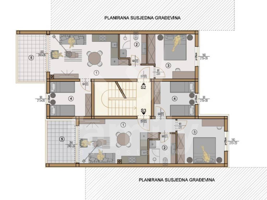 Apartment S2 Z3 with a total area of 58.36m2 is located on the first floor of a residential building and stands out with a good layout of space and its own outdoor area. It consists of a spacious living room connected to the dining room, a kitchen functionally integrated into the living area, two bedrooms, a bathroom and a hallway with enough storage space. A special advantage is the covered terrace of 8.03 m2, which provides additional outdoor space suitable for daily use and spending time outdoors with family and friends - a rarity that significantly increases the quality of living.