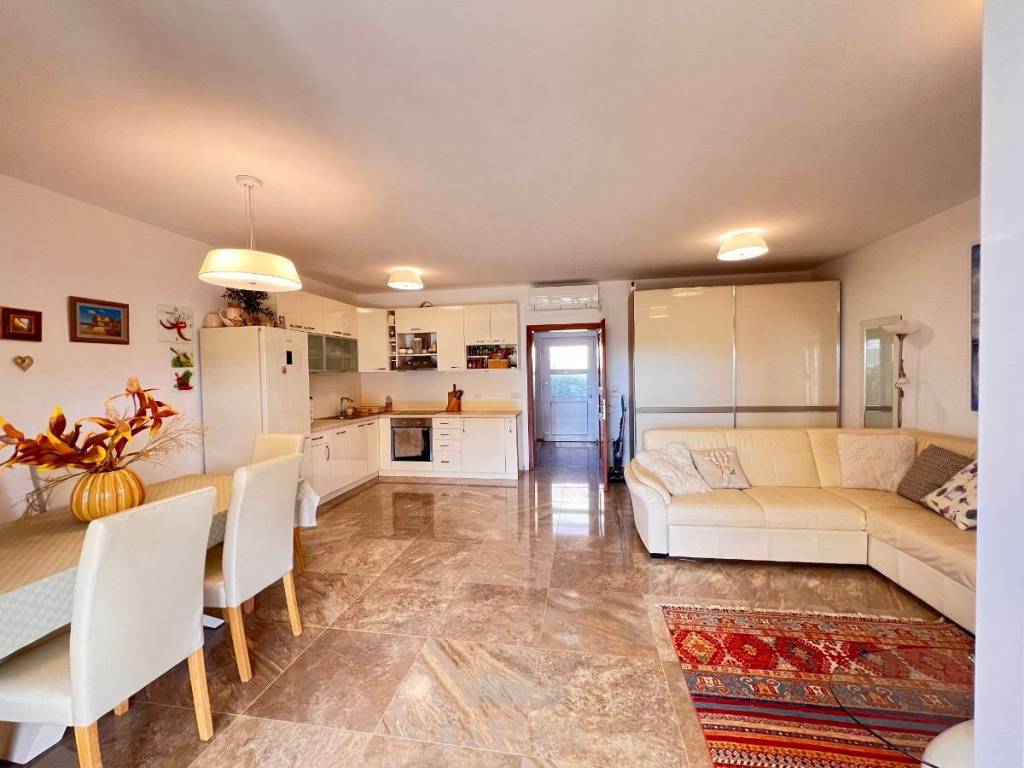 U blizini Novigrada prodajemo srednju kuću u nizu (novija gradnja), sa atrijem/vrtom i dvorištem te 2 parkirna mjesta, ukupne vanjske površine 142,75 m2 + kuća (104,52 m2 neto) = 247,27 m2.