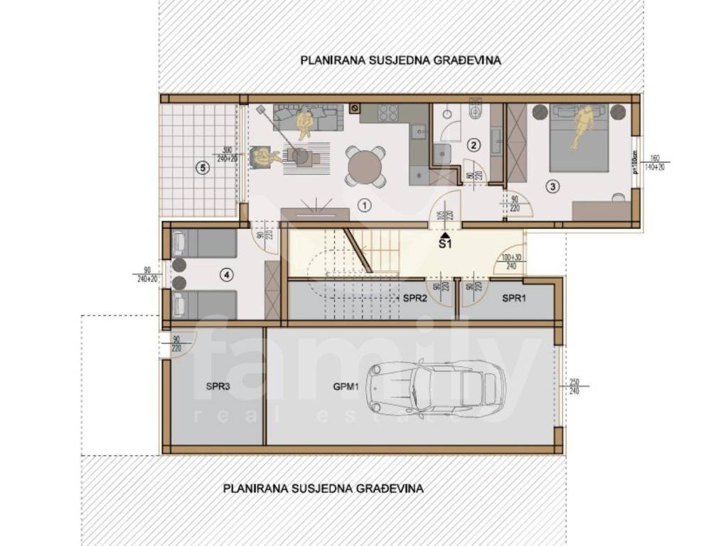 Apartment S1 Z5 with a total area of 56.77m2 is located on the ground floor of a residential building and stands out with a good layout of space and its own outdoor area. It consists of a spacious living room connected to the dining room, a kitchen functionally integrated into the living area, two bedrooms, a bathroom and a hallway with enough storage space. A special advantage is the loggia of 7.25 m2, which provides additional outdoor space suitable for daily use and spending time outdoors with family and friends - a rarity that significantly increases the quality of living. There is also a beautiful garden next to the apartment that creates a sense of privacy and peace, which comes at an additional cost.