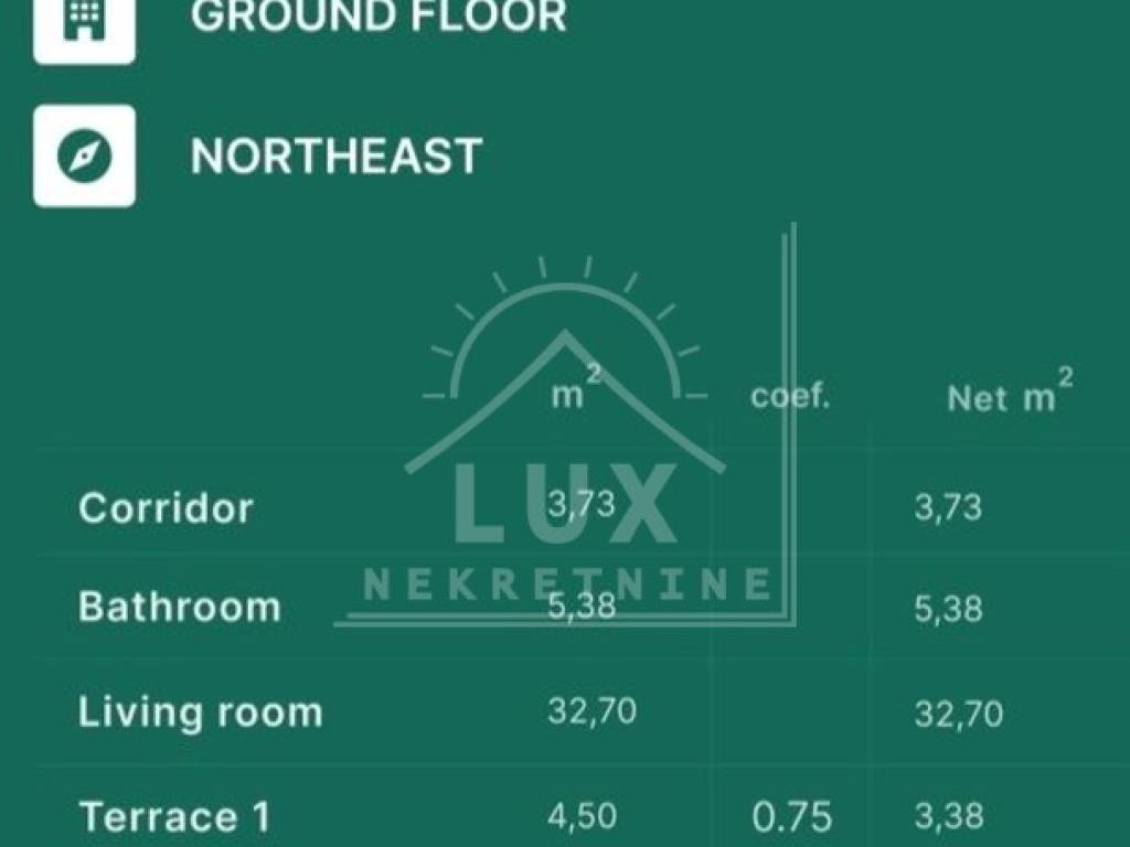 The orientation of the apartment is NORTHEAST.